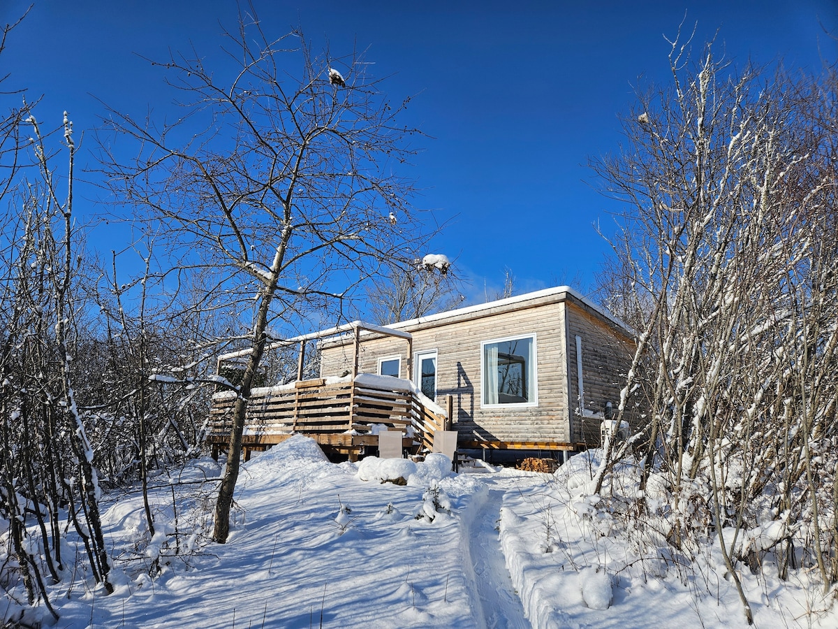 Private, quiet & secluded cabin nestled in the mountain with a sunset view of the Alma valley. Relax & unwind after a day exploring our surrounding gems. Enjoy a romantic & therapeutic hot tub soak with a panoramic stargazing view giving a sense of stillness within nature. 1 Min drive, or 10 min walk to Alma, beaches, Fundy NP, shops, restaurants, waterfalls, hiking, snowshoeing, kayaking, biking, & more! Adventure in day, experience the secrets of relaxation at night - The New Fundy Hideaway.