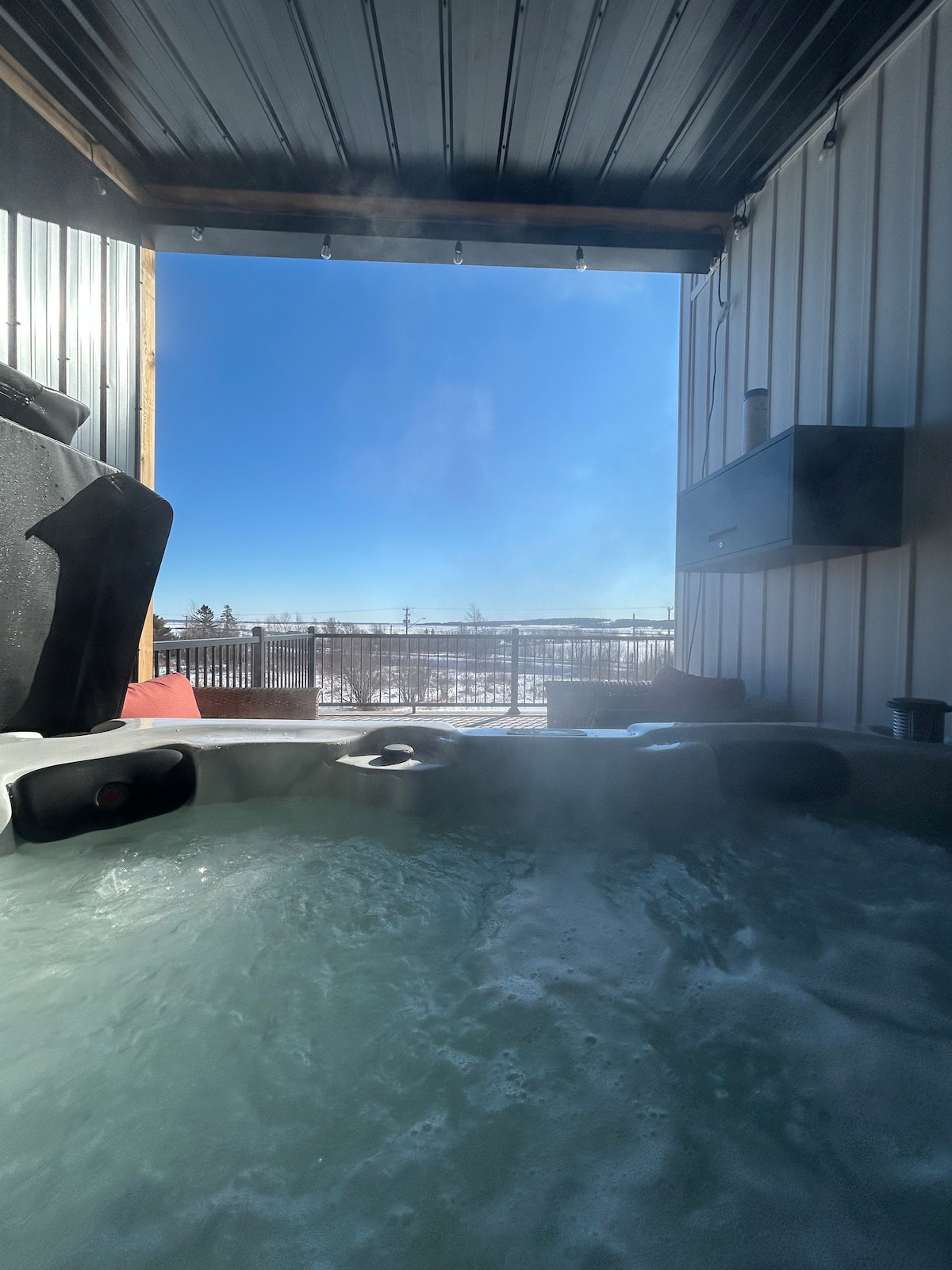 Indulge and unwind in our brand new fully loaded luxe Glamping Dome! We added a little touch of luxury, and rustic camp feel. Enjoy your stay! During your stay, you will have private access to Canada’s fanciest top-line Hot-Tub spa, the Hydro Pool Model 395 CLIMATE🌞❄️ This Dome is equipped for any sort of Canadian climate! Featuring a Mini Split for Heating/Cooling, & Heated Flooring (not in use during summer times) for those brr cold winters