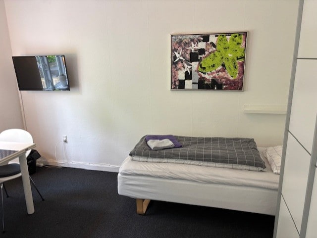 1 gæst, 1 soverum, en enkelt seng. Hyggeligt værelse få minutter fra Vejle C. Værelset har adgang til fælles fuldt udstyret køkken, og fælles badeværelse med bruseniche, der deles med et andet værelse. Der er mulighed for vask og en dejlig stor fælles terrasse med grill og altan. Gratis Wi-Fi. Tæt på byen, skov, fjord og Vejles mølle, 5 minutter fra banegården. Der kan lejes cykler hos os. Fri parkering på gaden.