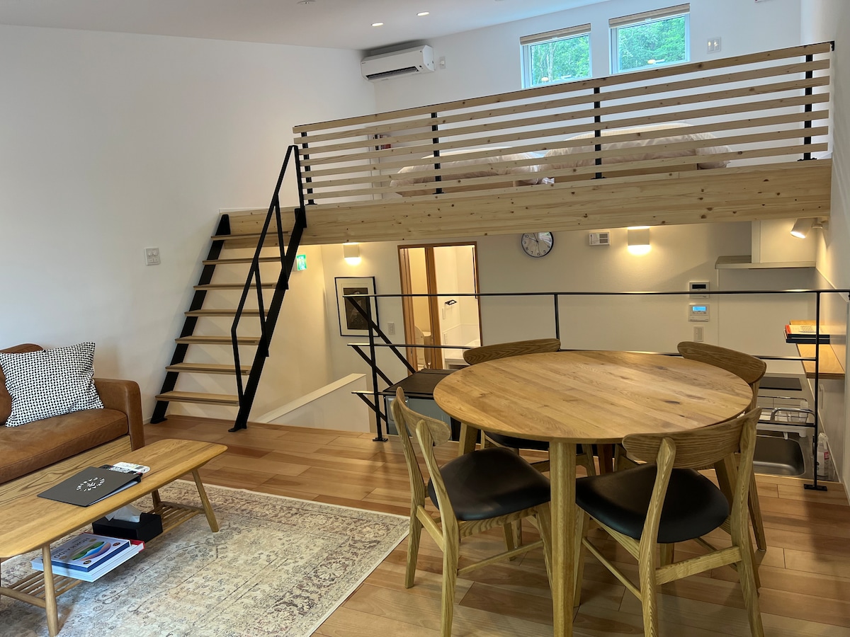 【1】新築3階建アパート × 富良野駅徒歩12分 新築ならではの清潔感と開放的で明るい空間が特徴のメゾネットタイプアパート。 1階が駐車場、2階3階が居住フロアとなっている戸建てのようなホテルです。リビングは吹き抜けになっており、大きな窓が開放的な空間を演出。 寝室は2階と3階ロフト部分の2室。最大人数4名なので一人旅にも、友人同士の旅にも最適な大きさ。 また地元の食材を使っての調理も快適にできる、清潔感があり広々としたキッチンは使いやすさ抜群。 【2】富良野駅徒歩12分 × 買い物にも便利 富良野市の中心部に位置する当物件は、JR富良野駅まで徒歩12分、車で5分の好立地。富良野周辺の観光地へのアクセスが抜群。 「コープさっぽろ富良野店」や「サツドラ富良野店」また地元のお土産が揃う「フラノマルシェ」までも徒歩圏内で食事や日用品の買い物にも非常に便利で長期滞在にも最適です。 また「唯我独尊」や「くまげら」「カレーのふらのや」といった地元の有名なレストランも徒歩で移動できる範囲にあり、観光にも買い物にもグルメにも、様々な旅の目的に応えてくれる最高の立地。