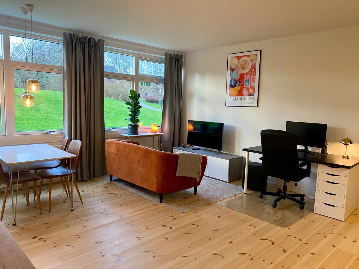 Beautiful nature and central location. The apartment is only a few 100 meters walk to the lovely Ryget forest, Værløse city center or S-train, so you can quickly be in the heart of Copenhagen. The home is furnished with an entrance hall, kitchen-living room, bathroom and bedroom. The kitchen-living room has good natural light with 4 large windows, as well as a newly refurbished kitchen. The bedroom contains a 140x200 cm tempur bed and plenty of wardrobe storage.