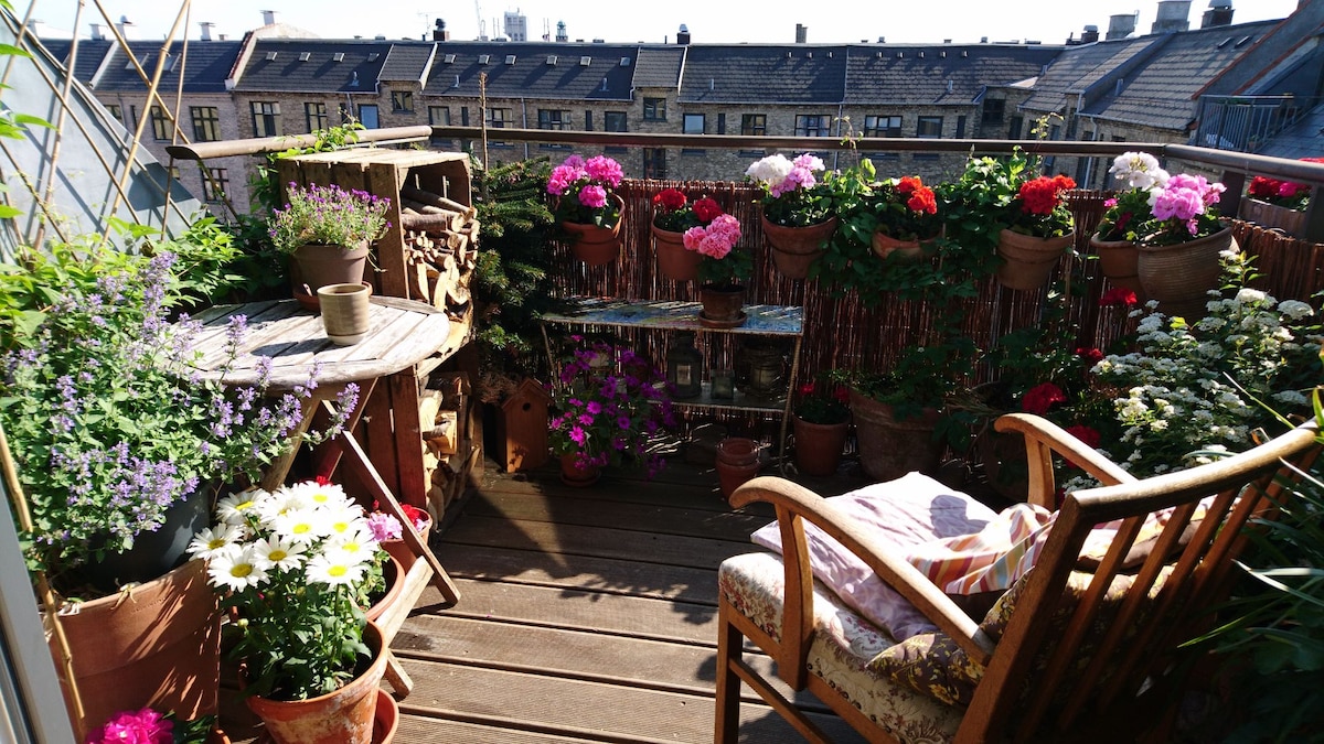 平均评分 5 分(满分 5 分),共 35 条评价弗雷德里克斯堡(Frederiksberg)舒适的顶层公寓,带两个阳台