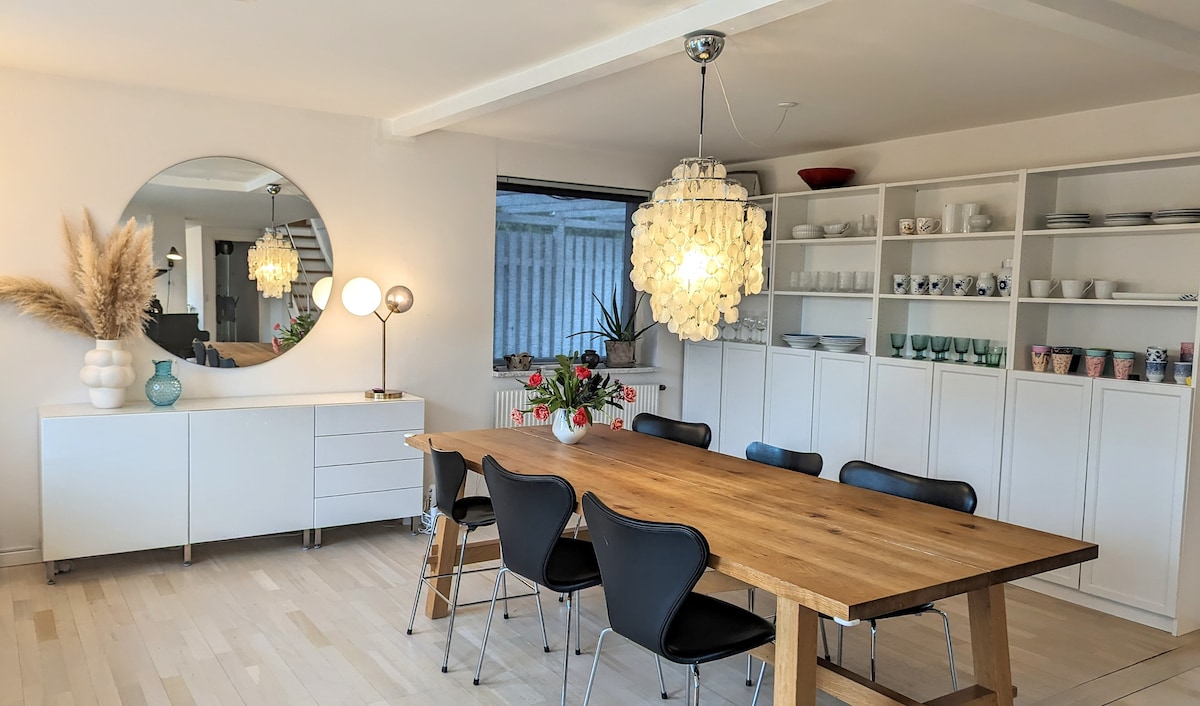 Welcome to our villa located in peaceful surroundings near forest and nature. With a spacious garden, large terrace, trampoline, and a balcony on the first floor, our home is a wonderful retreat for families. The stylish decor and comfortable amenities ensure a pleasant stay, while the convenient location just 4 km from the S-train station and a 20-minute drive from Copenhagen make it easy to explore all that Copenhagen and its surroundings have to offer. *Available for families & couples*