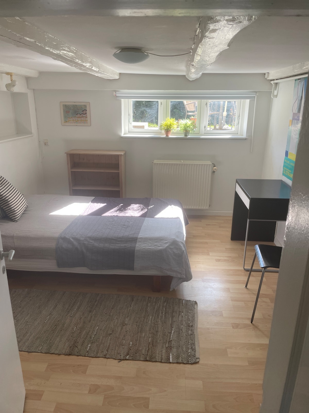 Nice central room 2 min. from public transportation. S-train/busses 20 min. to Copenhagen. Room 1 (basement) furnished, bed 120 cm. Workstation, chair, cupboard. There is kitchen and shared bathroom with shower. Free wifi. Long term stay possible - ask for special rates Please note - low ceiling, best to be less than 182 cm.