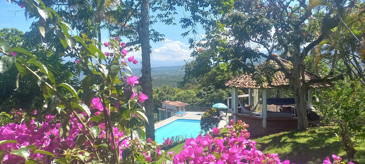 Desconectante, descansa, respira. La finca Miramar fue originalmente cafetera. La casa esta rodeada de naturaleza, en algunos momentos del día las aves se acercan a la piscina y a los árboles frutales. Cercano se encuentra el Cerro Quinini, una reserva forestal protectora, en la que podrás realizar caminatas, avistamiento de aves, recorridos en bicicleta y muchas otras actividades. Disfrutarás de tranquilidad y silencio, perfecto para una escapada corta de la ciudad o un descanso reparador.