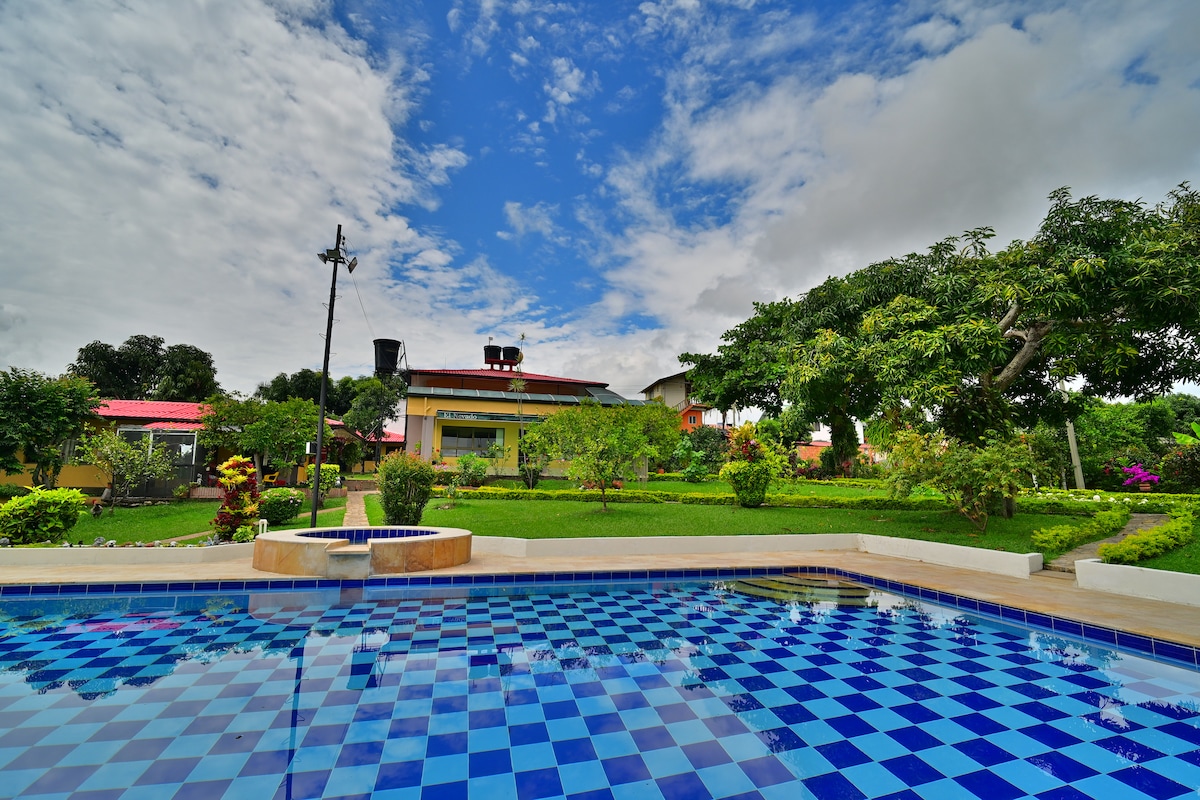 Desconectante, descansa, respira. La finca Miramar fue originalmente cafetera. La casa esta rodeada de naturaleza, en algunos momentos del día las aves se acercan a la piscina y a los árboles frutales. Cercano se encuentra el Cerro Quinini, una reserva forestal protectora, en la que podrás realizar caminatas, avistamiento de aves, recorridos en bicicleta y muchas otras actividades. Disfrutarás de tranquilidad y silencio, perfecto para una escapada corta de la ciudad o un descanso reparador.