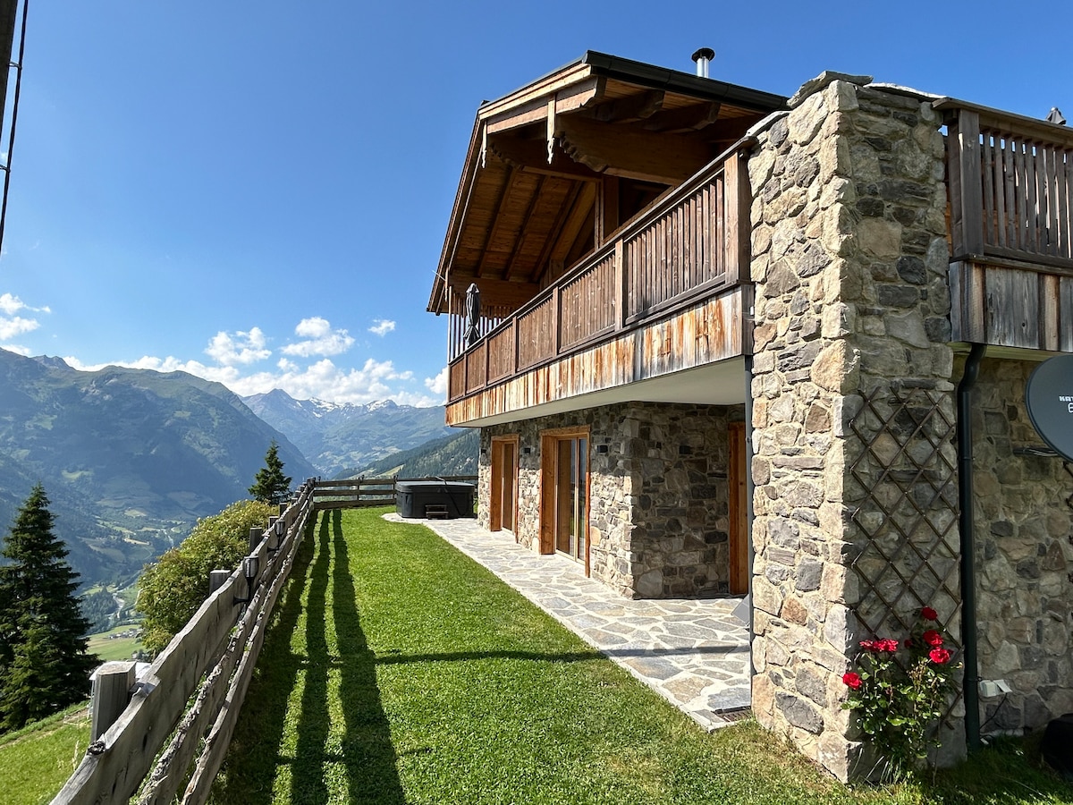 Exklusives Panorama Chalet inmitten der höchsten Berge! Entspann dich in dieser besonderen und abgelegenen Unterkunft. Lass deine Seele baumeln und erhole dich vom stressigen Alltag in einer atemberaubenden Bergwelt. Genieße gemütliche Abende vorm Kamin oder relaxe in der Sauna. Aus dem Whirlpool kannst du den freien Blick in die umliegenden Berge genießen. Die herrliche Panoramaterasse und die große Fensterfront ermöglichen einen einmaligen Ausblick.