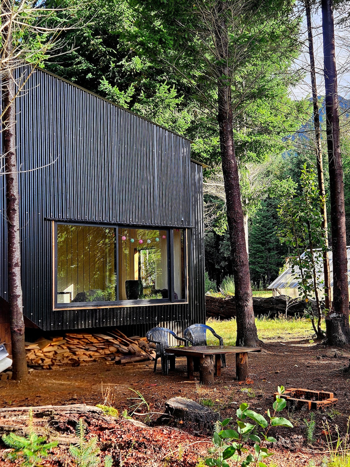 Cabaña en Futaleufú con vista a la Laguna Espejo, Wi-Fi y estacionamiento. Ideal para 2 personas, con calefacción a leña, cocina equipada, frigobar y baño privado con agua caliente. Ubicación privilegiada: frente a la laguna y a pasos del centro del pueblo. Privacidad y tranquilidad La cabaña se encuentra dentro de un terreno privado donde existen otras dos construcciones que no se arriendan a turistas. Esto asegura que disfrutes de un espacio exclusivo y seguro.