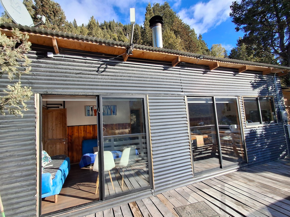 Agradable cabaña con hermosa vista y tranquilidad cerca del río, reserva, límite con Argentina y muy cerca del pueblo y todos sus servicios. Vive la Patagonia en una cabaña cálida y agradable.