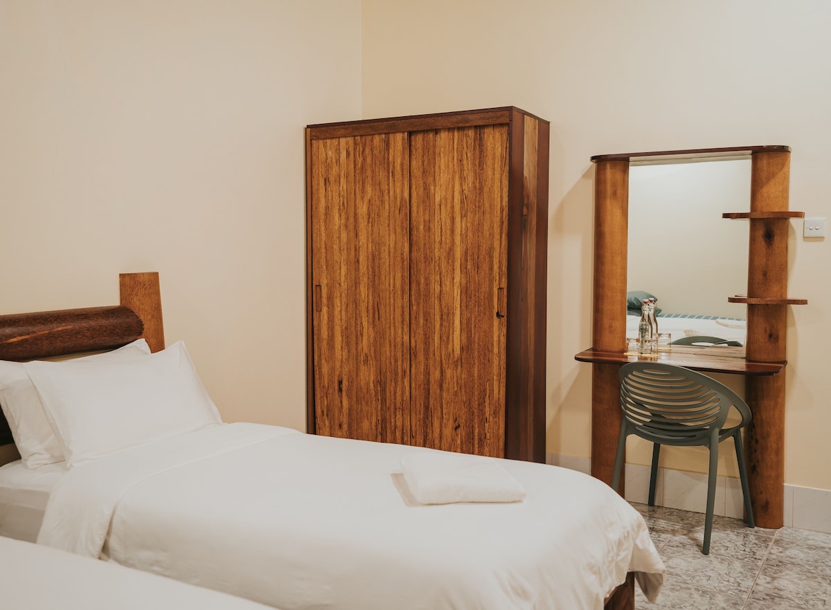 Perfect for small families or groups, this Family Room for up to 3 guests at The Sandscape offers two single beds (convertible to a double) plus one single bed and a private en-suite bathroom. Located in a quiet neighborhood, with shared garden and communal areas, shared Kitchen access. Walking distance to airport, harbour, dive centres, cafés, and restaurants. Shared Kitchen Access Private room in a shared guesthouse.