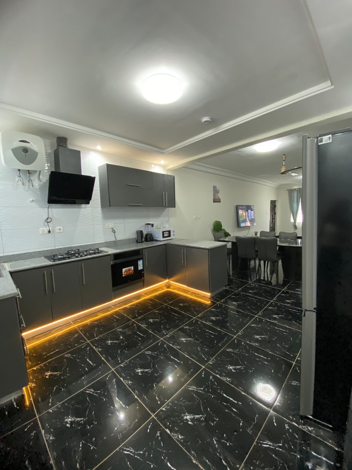 Bring the whole family or friends to this great apartment with lots of room for fun and no worries with power interruptions as there’s a 24hr solar system as a backup. Relax in the calm, stylish apartment with fresh breeze from the Aburi mountain with free parking lot, garden, 24/7 security service and swift customer service. The residence have two bed ,two bathroom, spacious hall and dinning, and kitchen with all necessary amenities