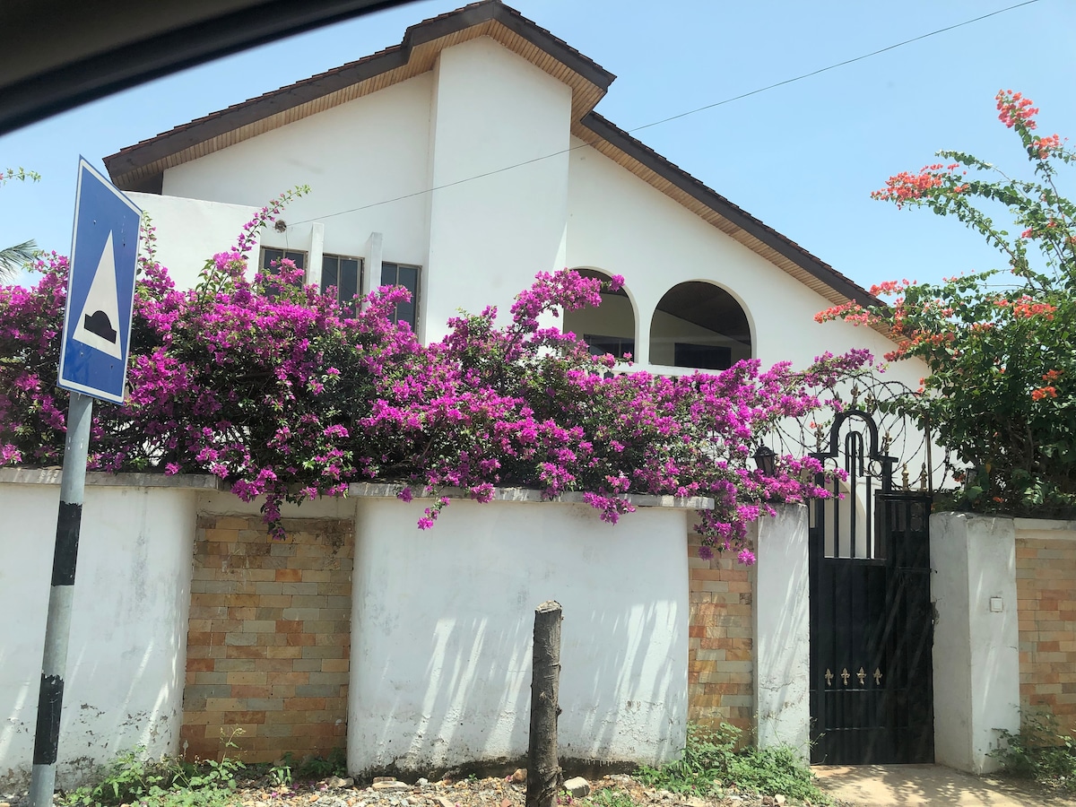 Forget your worries in this spacious and serene space, not far from the akuapim mountains, Aburi gardens, its wonderful tourists attractions and unique clean air makes it the best area to stay., 30 mins drive to the city of Accra. spectacular evening view over Accra from the hills. The master bedroom is very spacious with a capacity of 2 king-size beds and a study area. It's newly built and very fresh. Dont hesitate to contact me for more info. It's a 2 in 1 compund building with caretakers.