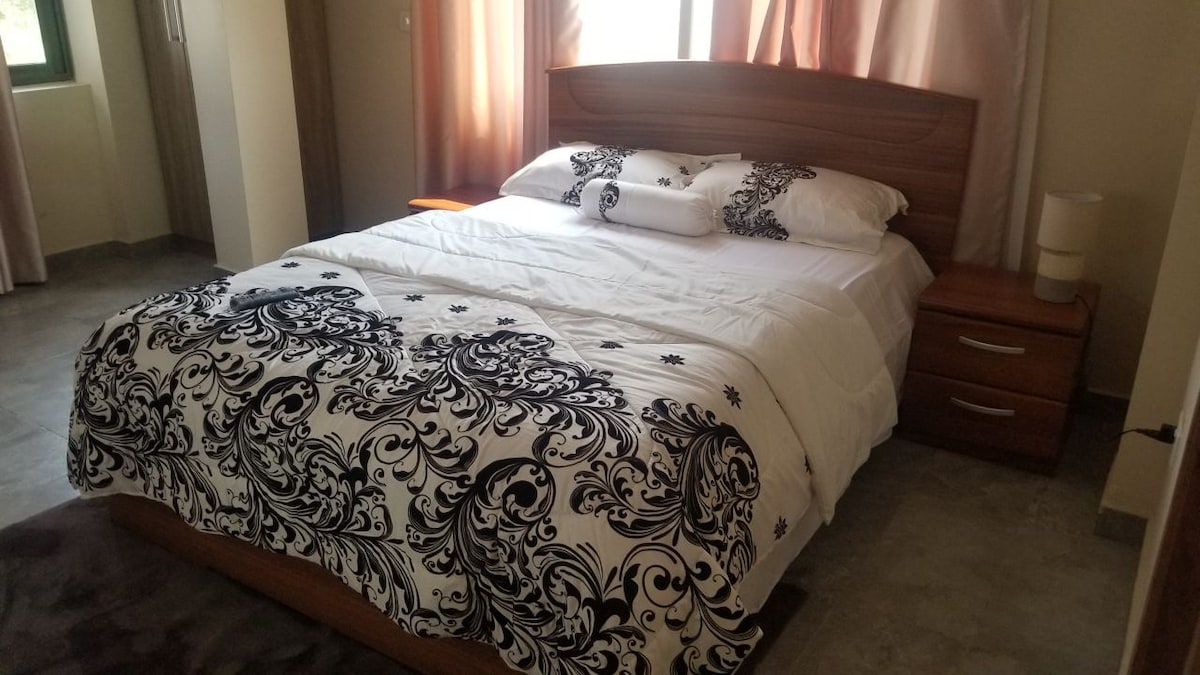 Welcome to your upscale urban getaway in the city of Accra! With a stunning view of the Aburi mountains, only a few minutes drive away or 15 minutes walk. Under 12 miles from the airport, straight on the M4 with no turns. Our two-bedroom apartment offers joy & comfort with 24/7 security, 24/7 electricity & water, with exclusive amenities, such as a pool, rooftop terrace, modern gym, full kitchen, wifi, barbecue, and more that will make your stay truly unforgettable