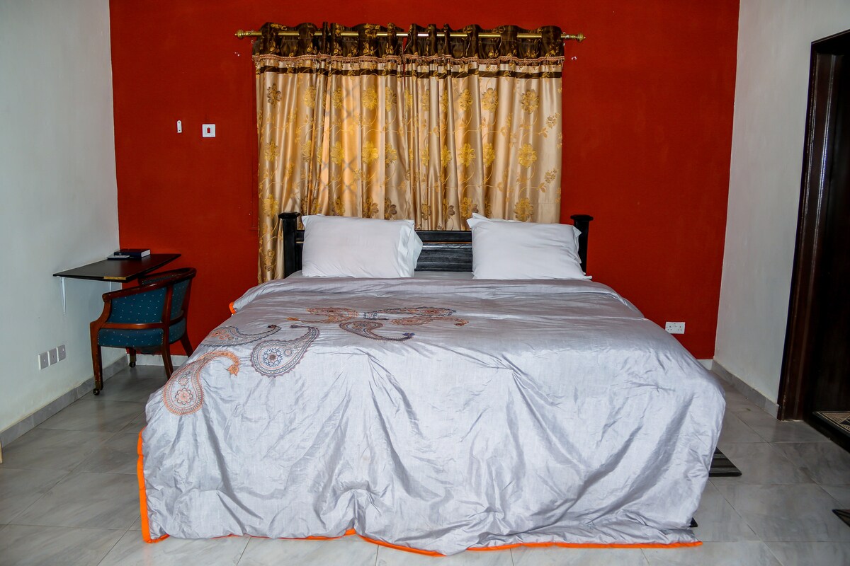 25 bedroom facility with excellent ambiance and an amazing view of the Akwapim ridge. Bed & Breakfast Quiet Hide Out Environment 15-minute drive from the Kotoka International Airport King Size Beds Spacious bathrooms Spacious restaurant Gated in-hotel car parking for free Comfortable and Self-Catering Rooms 24 Hour Excellent Security Personnel with outdoor CCTV cameras High-Speed Fibre Internet Connectivity for Free Close proximity to the Legon Botanical Gardens Easy Access to all nearby suburbs