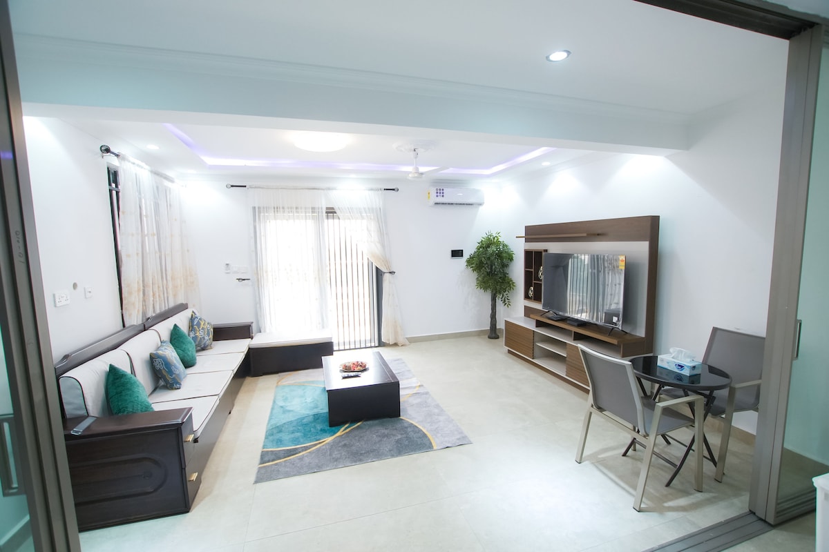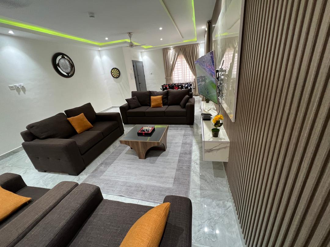 24/7 200kva standby generator and Solar DSTV with full channel access Netflix Breathtaking views High-speed internet Located in the heart of Accra, we're just a stone's throw from Achimota Mall and De Temple social center, perfect for swimming and exercising. The airport is 30-minute drive away. For your convenience, we have a professional laundry service, barber shop, and hair salon on site. Plus, "Ayewamu by Jane" is right next door, serving up delicious local cuisine.