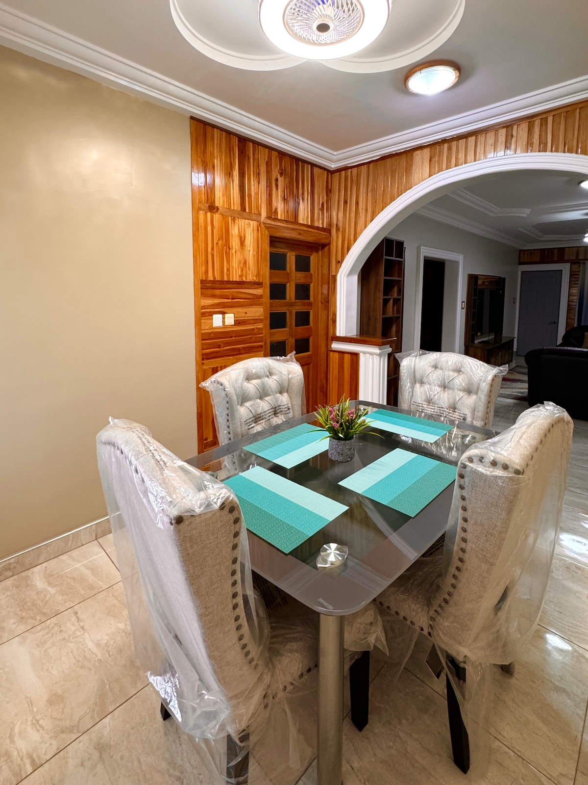 A fully furnished 3 bedroom townhouse in Ayi Mensah Park. Located 10 mins from Aburi Mountains. Perfect staycation destination for friends and family. In a peaceful gated community with a variety of amenities such as a community pool, kids playground, basketball court and club hose. 5mins from Oyarifa Mall, 10 mins to Aburi botanical gardens. Ring Video Doorbell system Free WiFi Free Netflix