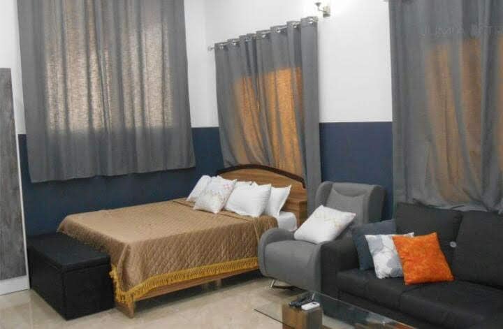 A very peaceful quiet spacious serviced Apartment with accessibility to key landmarks areas such as banks, restaurants, golf course, gym, laundry service... comes with spacious free packing lot and a security personnel to guide you. Apartment have extra storage room for laundry or storage, accessible within the studio apartment to guest.