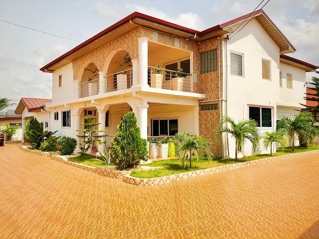 Located near the ashongman Melcom. only 20minutes drive from Kotoka International airport, Accra, this brand new property is ideal for traveling families who are looking to balance both space and location. The serene neighborhood, scenic locale, 24hour security.