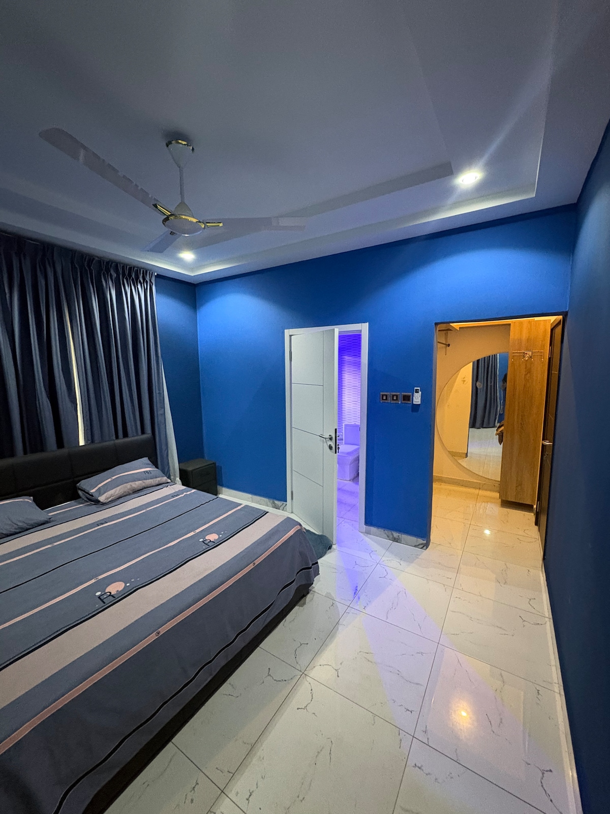 This is a one bedroom villa with wifi,dstv,Netflix. The bedroom and bathroom is spacious with water heating. It also has a beautiful modern kitchen and big living room. The room including kitchen has Aircondition installed and beautiful ambience lightening.You will feel at home once you’re here.