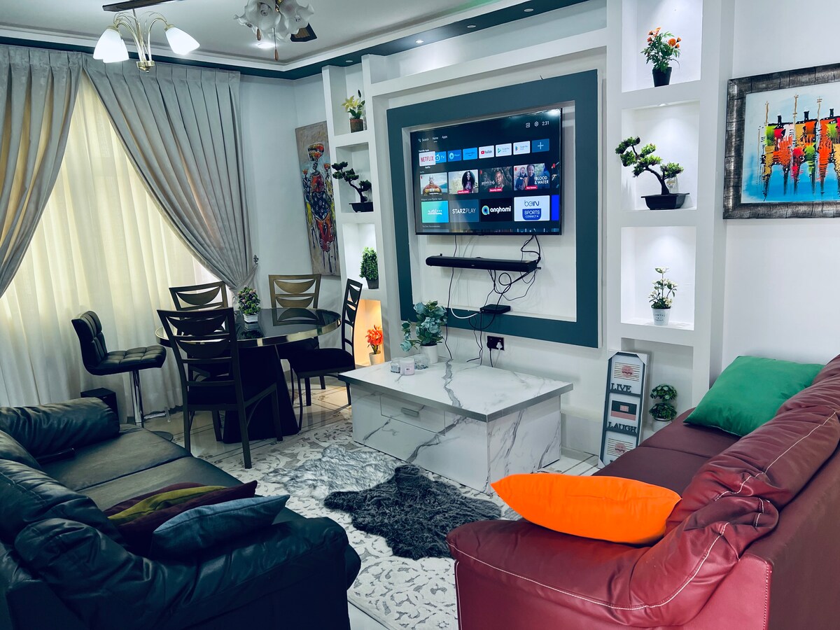 Relax with the whole family at this clean, spacious, secure, self contained 2 bedroom apartment. Located in a convenient part of town with close proximity to Achimota Mall. Hot water Modern decor. 24 hour security and concierge service with knowledgeable friendly staff for recommendations on places to visit. The apartment comes with all the mod cons you need for a stress free stay. Fully air conditioned for your comfort and truly a home away from home. 1 bedroom apartment also available.