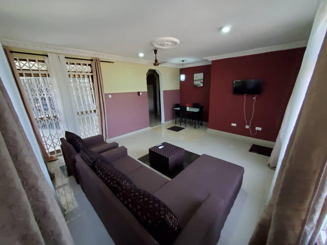 Make some memories at this unique and family-friendly place. 1- bed room with a king size bed ,with fully furnished living room,fully air-conditioned ,with attached fan,fully furnished kitchen .walled with security fencing and cctv cameras. 2 minutes away from hospital,security post,pub&restaurant, Gym,sports stadium ,night club.library,laundry . 3o minutes drive from Kotoka airport,10 minutes drives from Achimota mall and game center, minutes drive from China Mall and N6 Accra Nsawam highway.