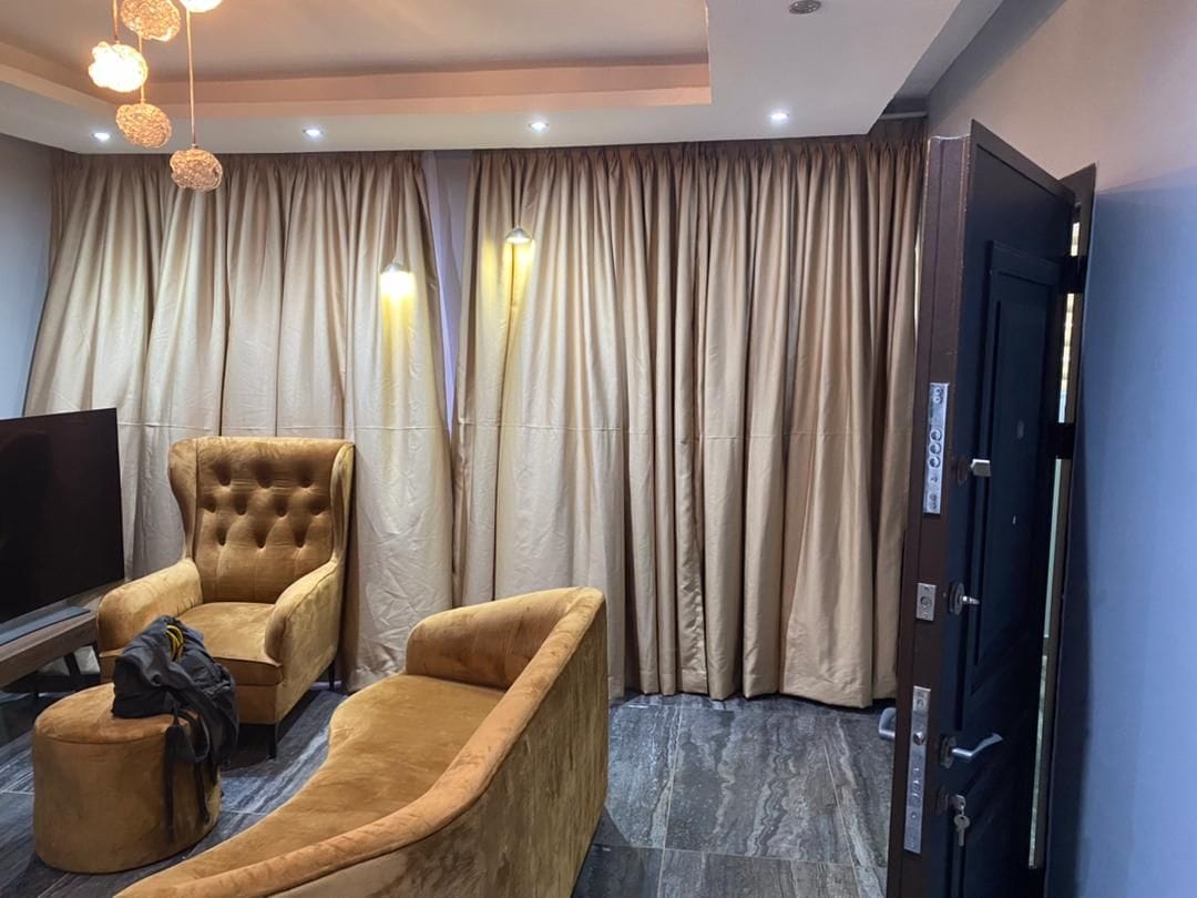 Relax and enjoy! The property comes with a luxury kitchen, an elegant dining room, treated water, a backup generator, free parking space, a furnished living room, a workspace with an office table, a large compound, a washing machine, CCTV cameras covering the exterior and frontage compound for safety, electric fence, 2 elegant porches, air conditioner in each bedroom, a dining area with a bonus space. Each bedroom has a bathroom with water heaters, wardrobes, king-size beds, and other features.