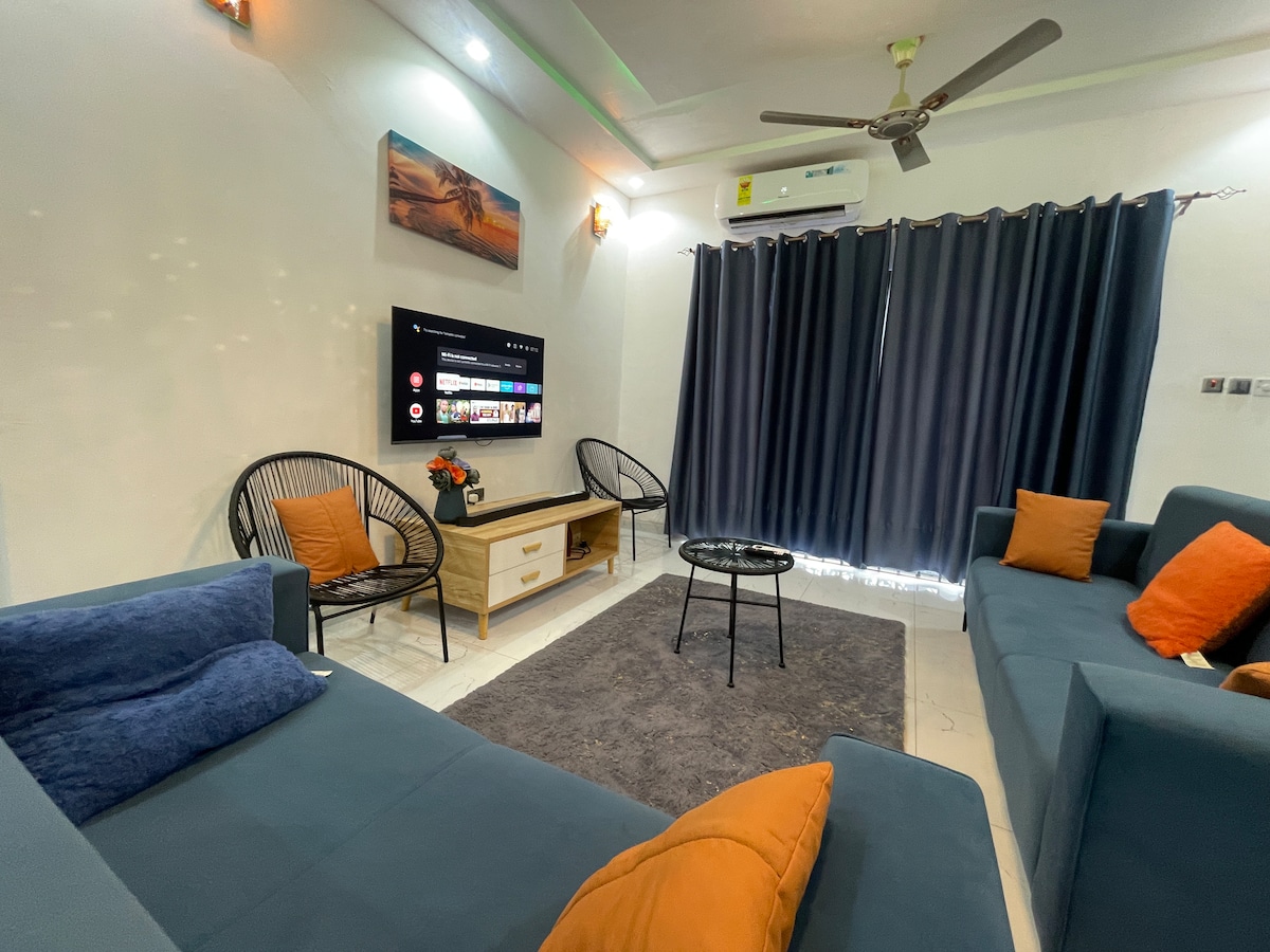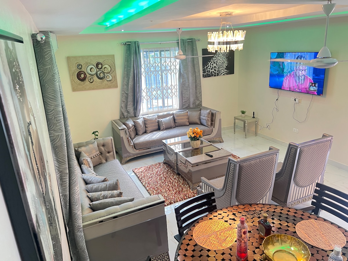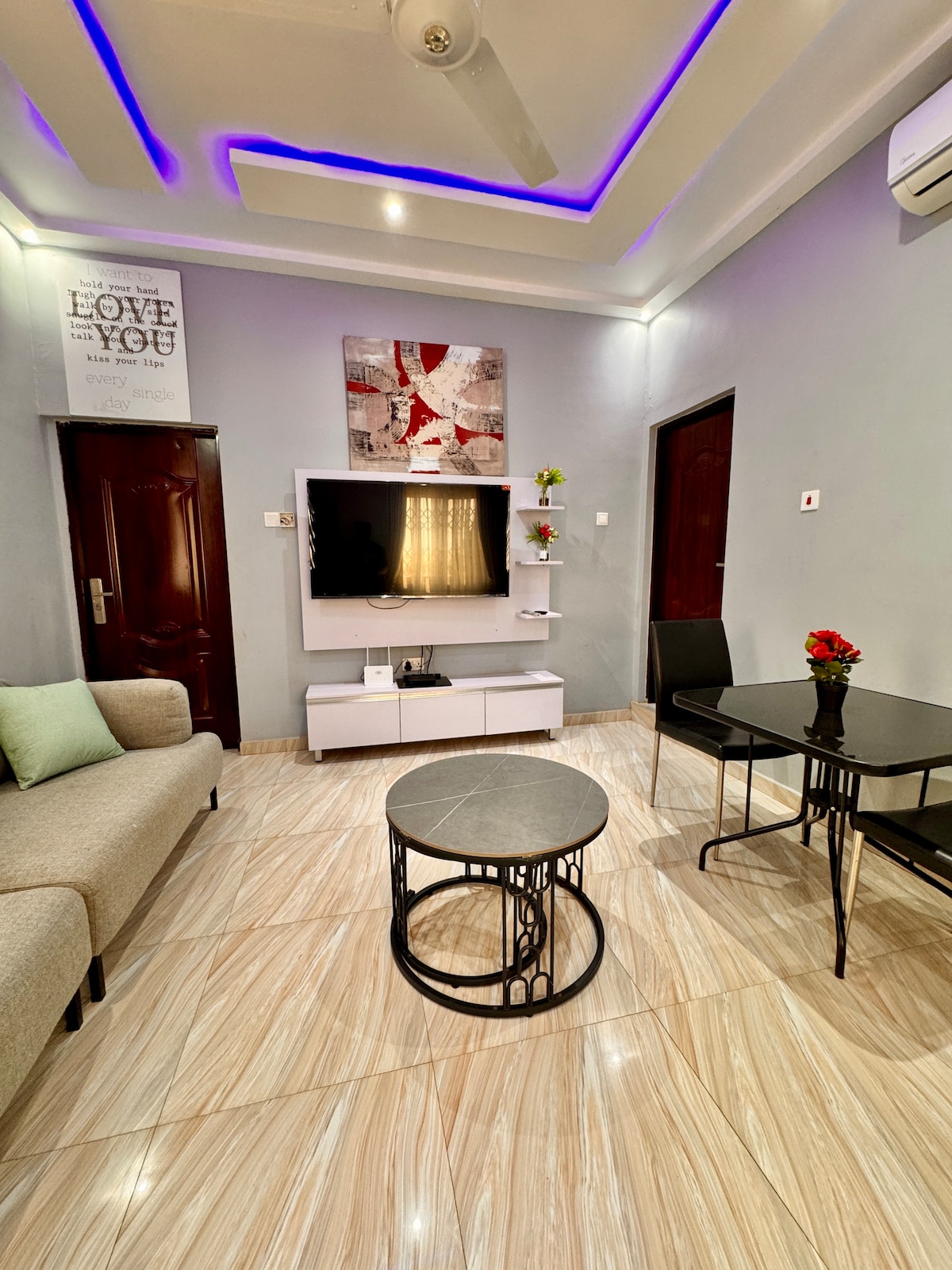 Escape the hustle and bustle of city life and enjoy the peaceful charm of our beautifully designed modern home, located just 1 minute from the iconic Abedipele Sports Complex in Kuntunse. Though only a 35-minute drive from the Airport, our home offers a serene retreat far from the noise. Perfect for couples, families, and remote workers, this home offers comfort and privacy in a secure and quiet neighborhood. Free airport pickup upon arrival Optional car + driver rental: For just $100/day