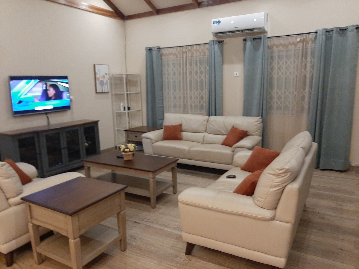 Welcome to the Banahene Residence! Our fully furnished 200 m² house features three bedrooms - each with a bathroom - comfortably accommodating up to five guests. Enjoy air conditioning and ceiling fans in every room, as well as a fully equipped kitchen for all your cooking needs. Our house is equipped with a video doorbell and electric security fence for your safety and peace of mind. - Breakfast and dinner service available - Airport shuttle on demand - Generator available