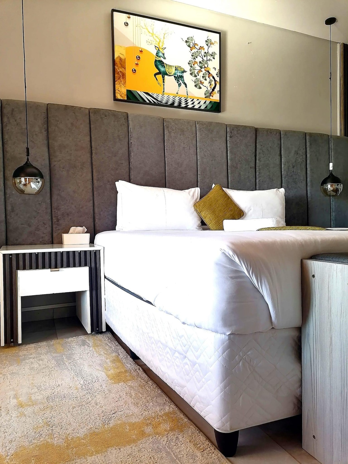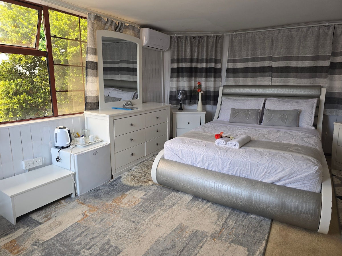 One-bedroom guest suite is situated in a private residence, within a secure estate. Enjoy a peaceful stay, perfect for travelers or business guests. The space features a comfortable bedroom, airconditioned, with a study table and smart TV, a coffee station and bar fridge, and a private bathroom with a shower. Conveniently located 11km from Sir Seretse Khama International Airport, the property is a 19-minute walk from Phakalane Golf Club. Ideal for short or extended stays.