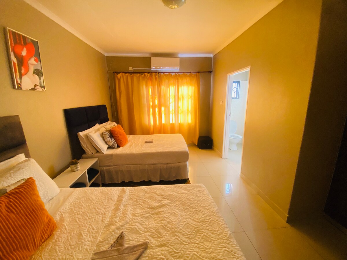 Experience the perfect blend of comfort and convenience in our charming 2-bedroom apartment. Ideal for families, friends, business travelers. Apartment Features 2 Comfy Bedrooms:Each room is tastefully decorated and equipped with queen beds, ensuring a restful night's sleep. Fully Equipped Kitchen:Prepare your favorite meals with ease in our modern kitchen. Cozy Living Area:Unwind in a warm, welcoming atmosphere. Modern Bathroom:Enjoy the clean bathroom stocked with essentials.