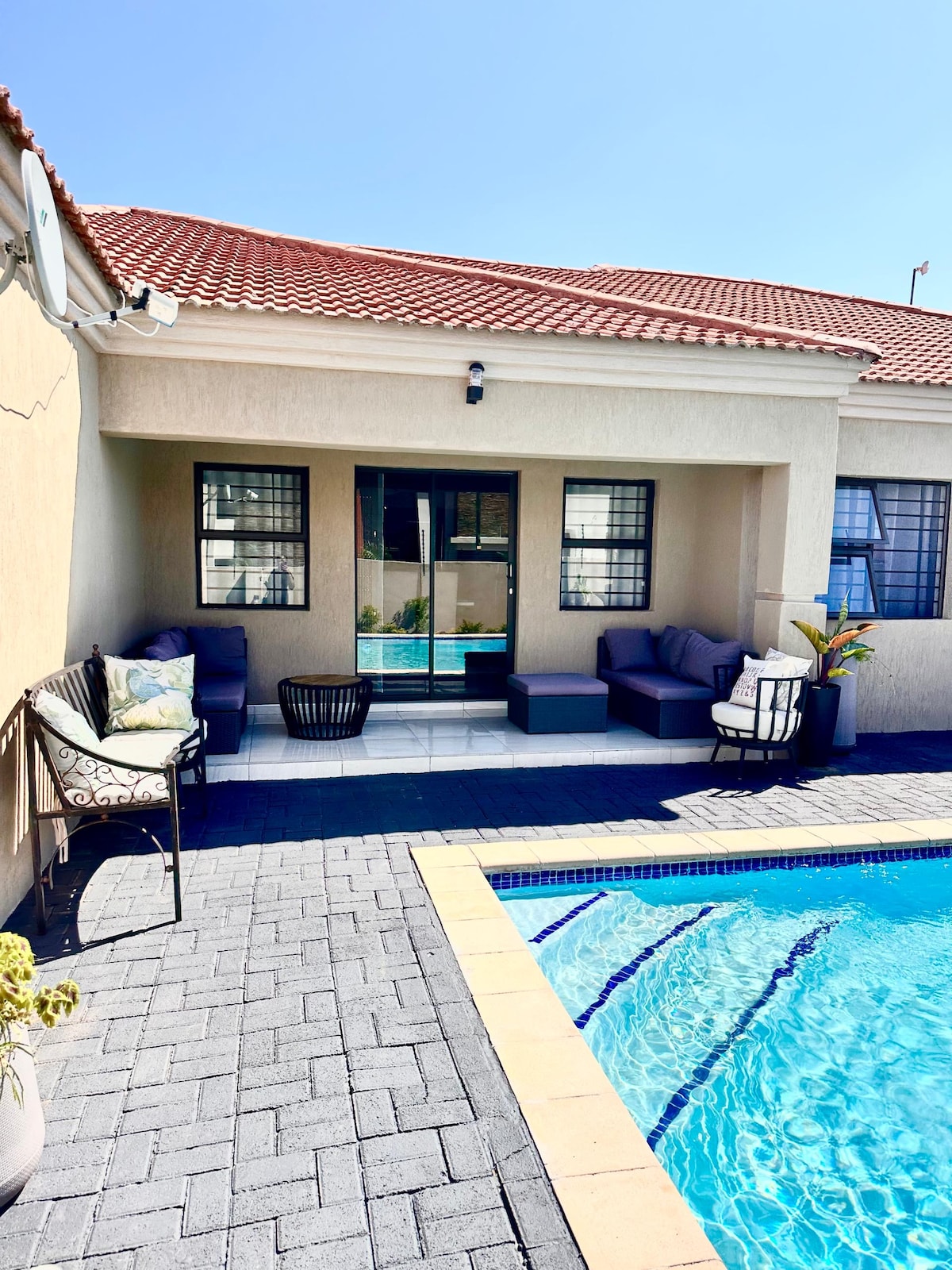 Welcome to Haus Nkeke, where vibrant design meets refined comfort. ☞ Community pool + Zen corner ☞ Outdoor dining area + BBQ grill ☞ Fully equipped + stocked kitchen ☞ Parking → driveway (4 cars) ☞ Workspace + 20 Mbps wifi ☞ In-unit fitness equipment ☞ 55” smart TV w/ Netflix ☞ Nespresso coffee maker 7 mins → Airport Junction Shopping Centre 14 mins → Sir Seretse Khama International Airport ✈