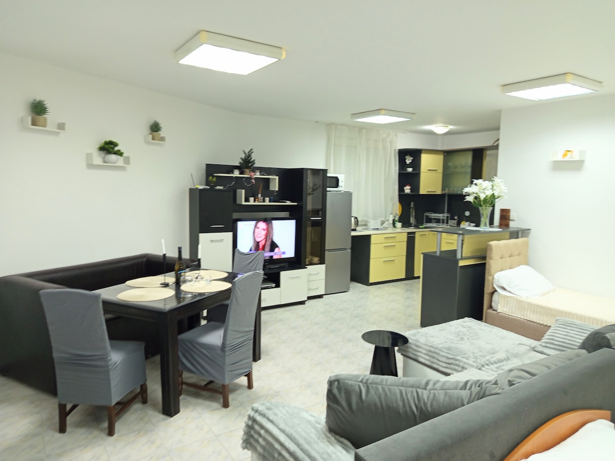 With it’s incredible view of one of the symbols of Veliko Tarnovo - the ,,Assenevtsi Monument’’, and much of the city, Tarnovo Studios will make you feel the unique spirit of the old Bulgarian capital. We offer you a large, modernly furnished studio with a kitchen area, a comfortable double bed, a sofa bed, private bathroom and a balcony . The studio can accommodate up to 4 people. We have another, smaller studio with the same view and location: https://bg.airbnb.com/rooms/42879235
