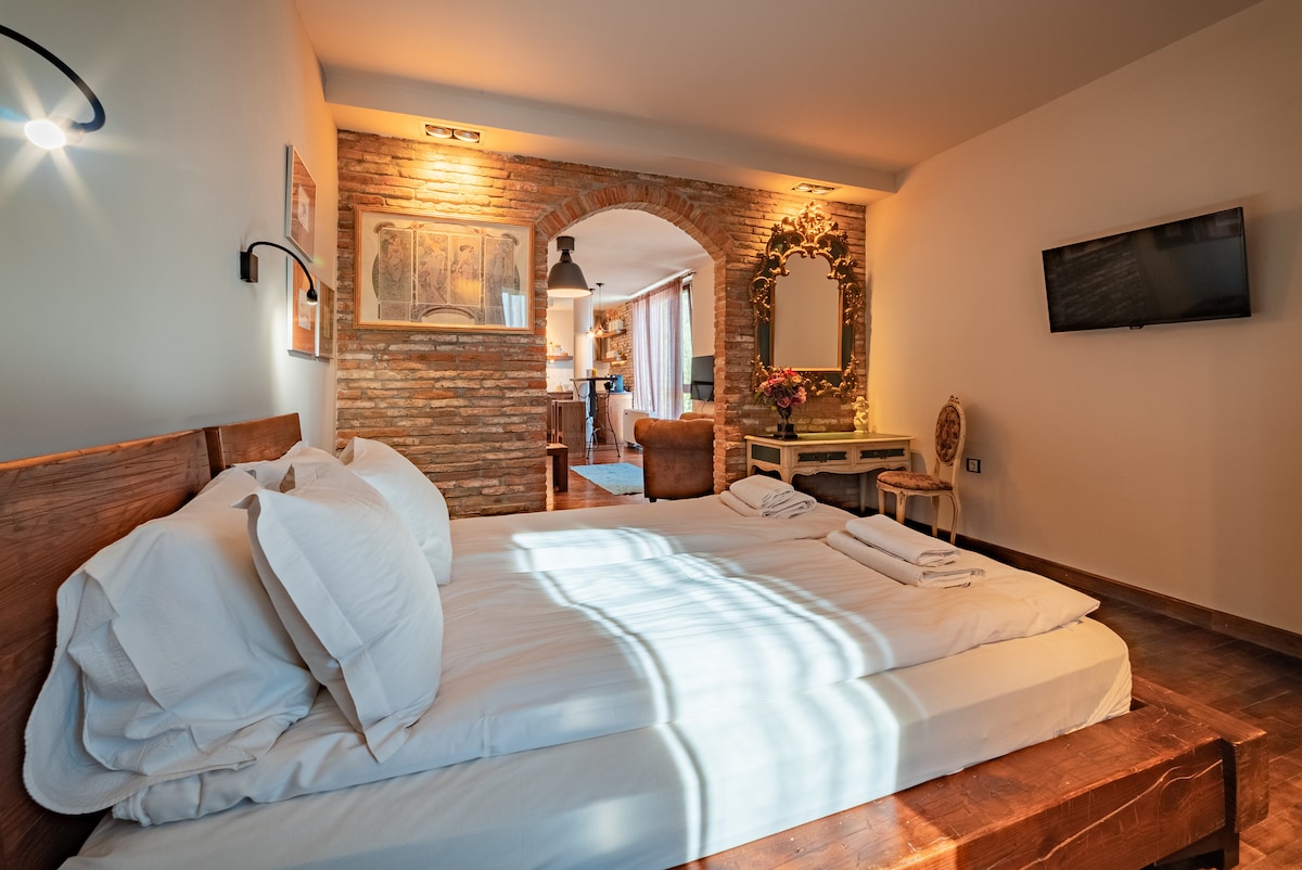 Насладете се на Габрово в нашия стилен двустаен апартамент, намиращ се в сърцето на центъра на града и близо до всичко, от което се нуждаете и искате да посетите. От големите прозорци се открива уникална гледка към река Янтра и планината. Настанете се удобно и се насладете на чаша прясно кафе или чай. Музеите и най-добрият ресторант са само на няколко крачки от апартамента. В близост до няколко по-малки парка и детски площадки, централната пешеходна улица и центъра на града.