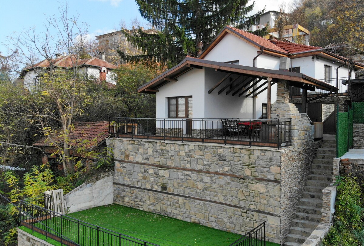 Location: Suhindol town, near Veliko Tarnovo city(45km) - 2 bathrooms - 3 bedrooms for 8-10 people, air conditioning in every room - cozy living room with open fireplace, sofa, small library and many board games - kitchen with everything you will need, dishwasher, oven, coffee machine - big dinning hall with a big table, karaoke system - outdoor jacuzzi ( additional payment ) - big garden with a barbecue area, trampoline for the kids, darts, hammock, etc. - Wine tour with tasting optional