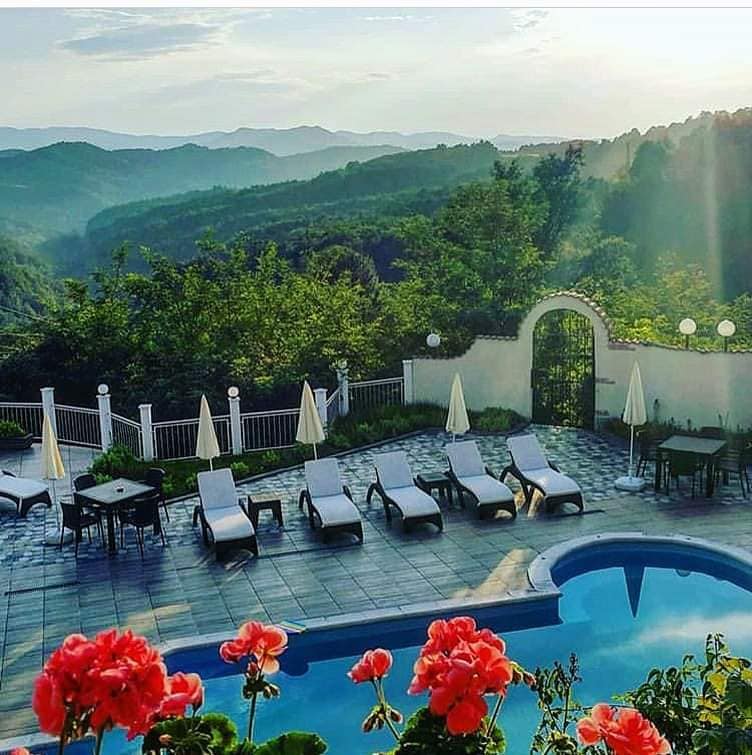 Villa Begria is located in the mountain town of Apriltsi.It has a great view of the highest peak in Balkan Mountains–Botev.Its capacity is 17 people.Every room has its own bathroom,balcony,satellite TV and wi-fi.The villa offers a spacious dining area with a stone fireplace and fully equipped kitchen.The villa also offers an outdoor infinity pool and jacuzzi(both summer only),sauna,outdoor bbq,outdoor sitting area.The guests can use a washing machine,dryer,iron,hair dryer,travel cots,high chair.