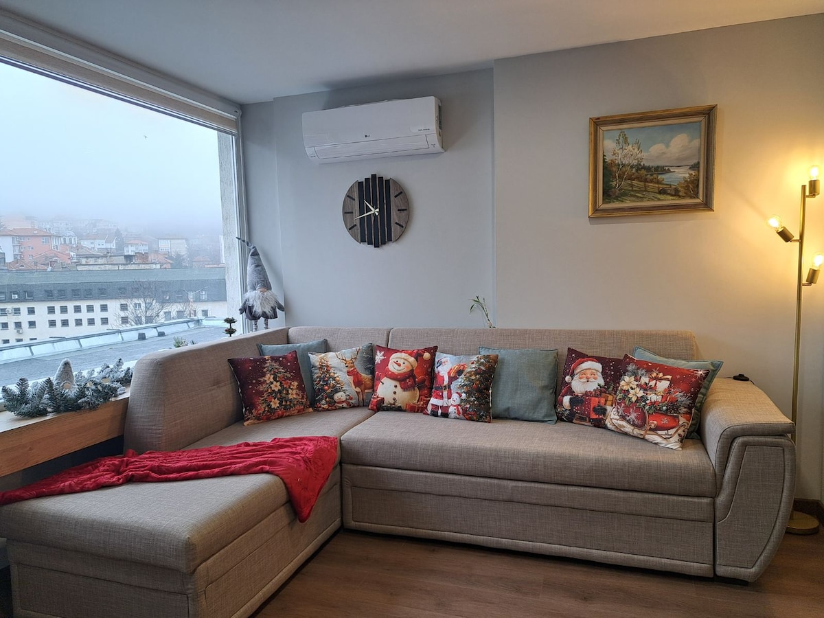 In Bulgaria's medieval capital, a cozy self-catering apartment on Blvd. Bulgaria 63 awaits! You'll have access to a fast WiFi, 2 TVs for your entertainment, fully equipped kitchen, super comfortable beds, and two balconies where you can enjoy your time. Free parking on premises available! Just a stone's throw away VT Mall is located. There you can find ATMs, restaurants, supermarkets, pharmacies and taxi services. The city center is in just a 10/15-minute walk or a mere 3-minute drive by taxi.