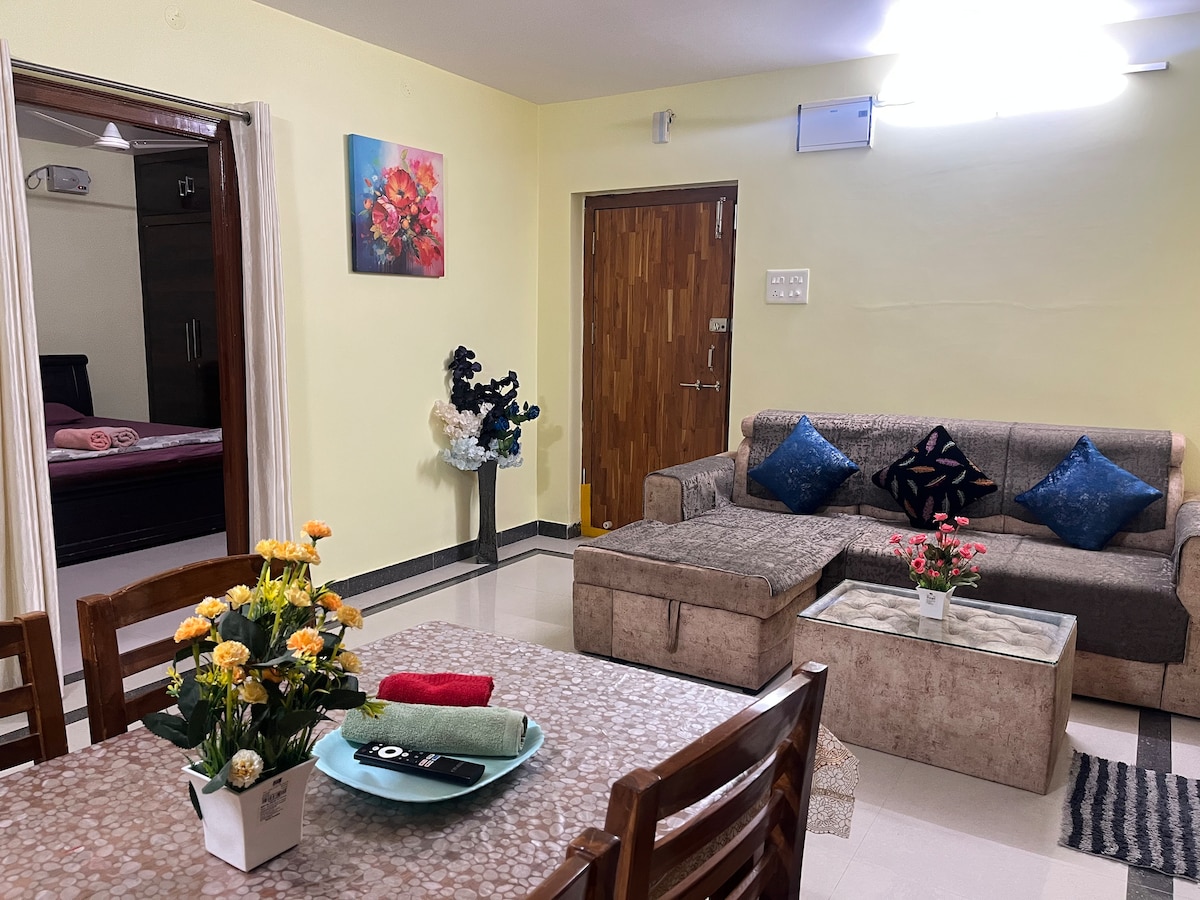 Modern Comfort in the Heart of Hyderabad- Stay steps away from the city’s top attractions, restaurants, and cultural spots in this fully equipped luxurious apartment. The space features a cozy bedrooms, Media Room with 75 Inches TV, Modular sofa, PS4 and well-stocked kitchenette, Wi-Fi, and a comfy bed to recharge after a day of exploring. Perfect for solo travelers, Families, couples looking for convenience and comfort in the city center. Book your stay and experience Hyderabad like a local!