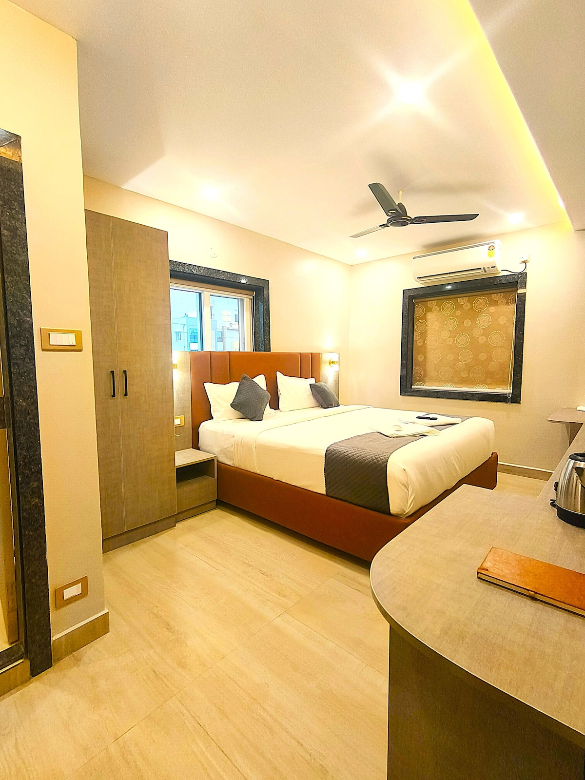 Experience luxury and comfort in our Executive Suite in Hyderabad, perfect for business travelers or couples seeking a premium stay. This elegantly furnished suite features a spacious bedroom, modern ensuite bathroom, high-speed Wi-Fi, air conditioning, and a dedicated work desk. Located in a prime area with easy access to IT hubs, shopping centers, and restaurants, it offers both convenience and class.
