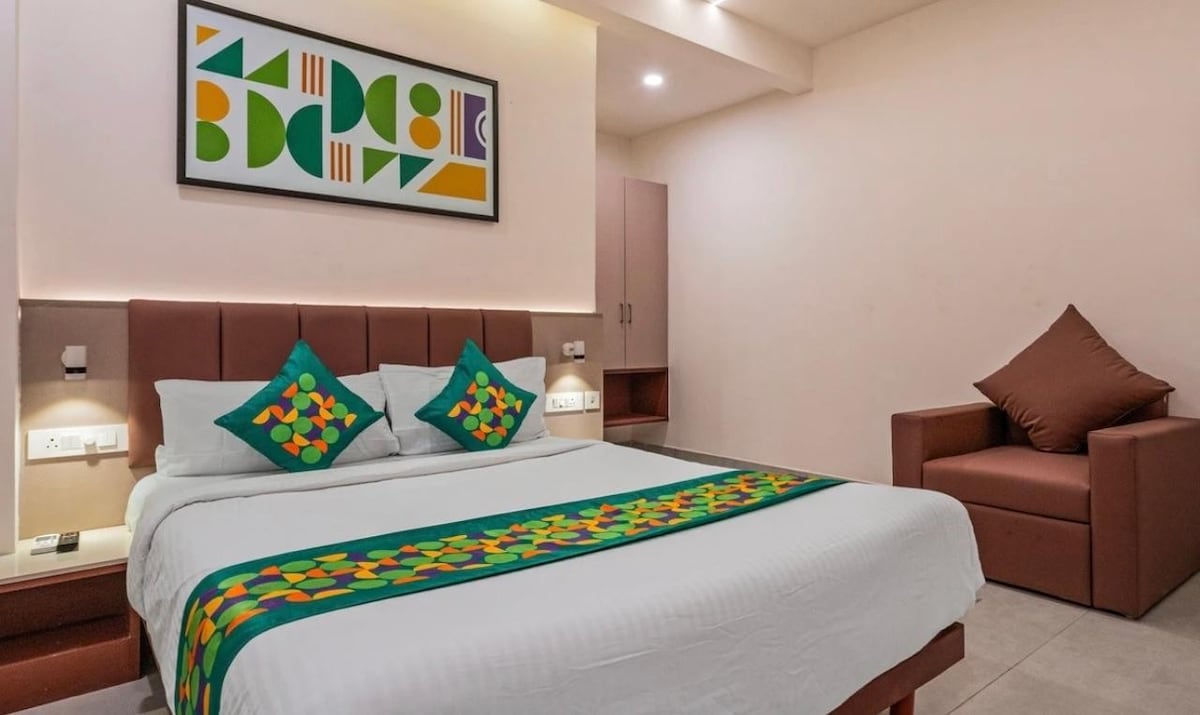 A modern hotel room in the heart of Madhapur, Hitech City. Designed for comfort and style, this newly launched stay features elegant interiors, cozy bedding, high-speed Wi-Fi, air-conditioning, and smart TV. Perfect for business or leisure, it offers easy access to HITEC City, major IT parks, restaurants, and cafes. Experience hotel-grade comfort with Servostay’s warm hospitality — your peaceful retreat amidst Hyderabad’s vibrant tech hub.