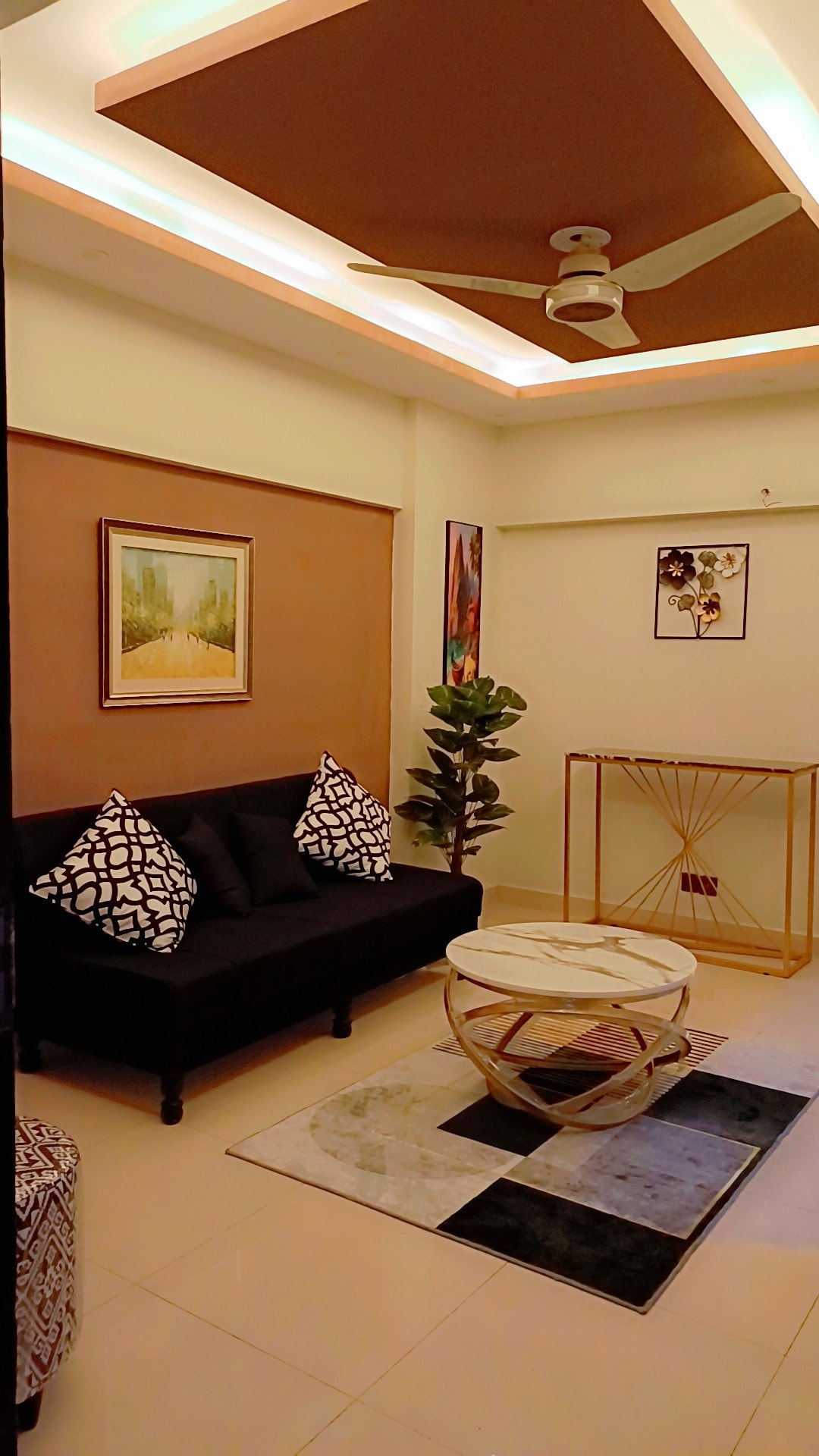 2BR apartment nestled in the heart of Karachi's vibrant city center. Each bedroom is a haven of comfort with plush bedding .The open-plan living area is a perfect blend of modernity and warmth,, fully-equipped kitchen. With local shops and eateries just a stone's throw away, this apartment is not just a living space but a gateway to the rich culture and energy of Karachi. It's the perfect urban retreat for anyone looking to soak in the city's dynamic spirit! How does that sound? 🏙✨
