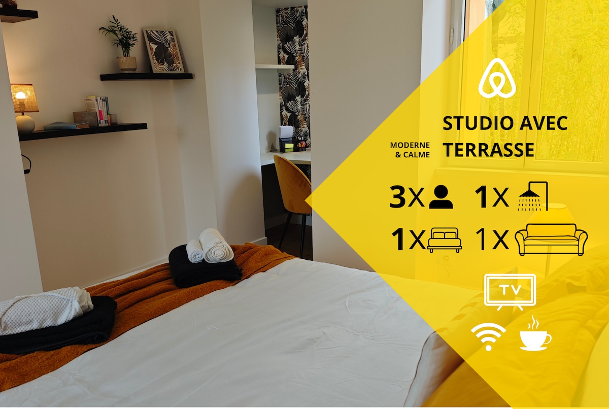 Appréciez le calme de cette pièce indépendante de 18m2 dans ma belle maison en pierre . Elle est décorée dans un esprit atelier cosy. ✓ Entrée indépendante ✓ Terrasse ✓ Forêt à proximité ✓ Lit "Queen Size" fait à l'arrivée ✓ Salle d'eau privative avec WC suspendu ✓ Serviettes de toilettes fournies ✓ Wifi ✓ Télévision ✓ Bouilloire avec sachets de thé et café soluble ✓ Mini Frigo ✓ Place de parking N'oubliez pas vos chaussons ;)