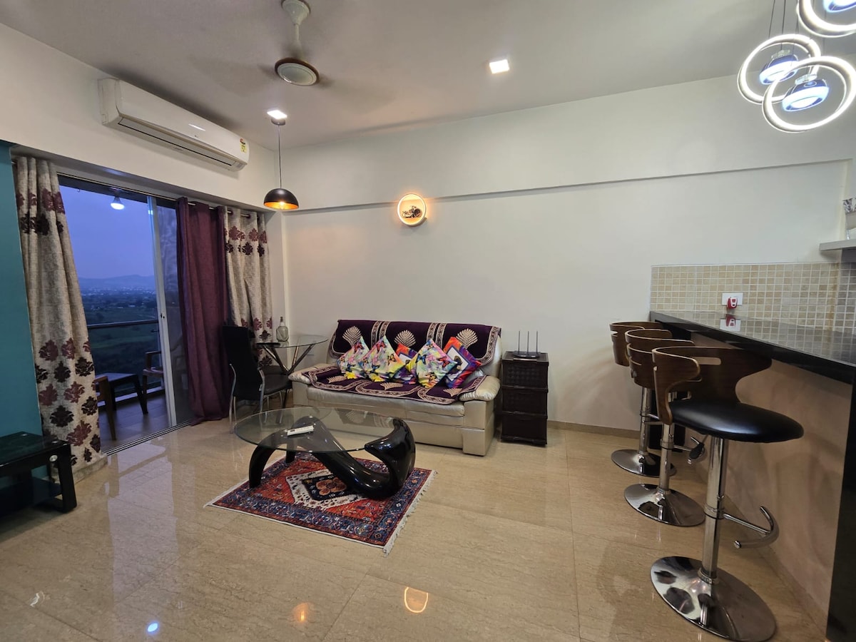 Take in the sunshine, breathe in the fresh air and enjoy the great outdoors. *Fast WiFi Enabled* Bedroom-Hall-Kitchen all Furnished with AC in all rooms and a Breathking View from the Living attached balcony, we Guarantee peaceful holiday at our heavenly adobe Our home on the banks of pawna river on the 20th floor will leave you with Serendipity, Solace, Surprise. Love and lot of care with which we have designed our stay specially for traveller's, weekend getaway and working professionals.