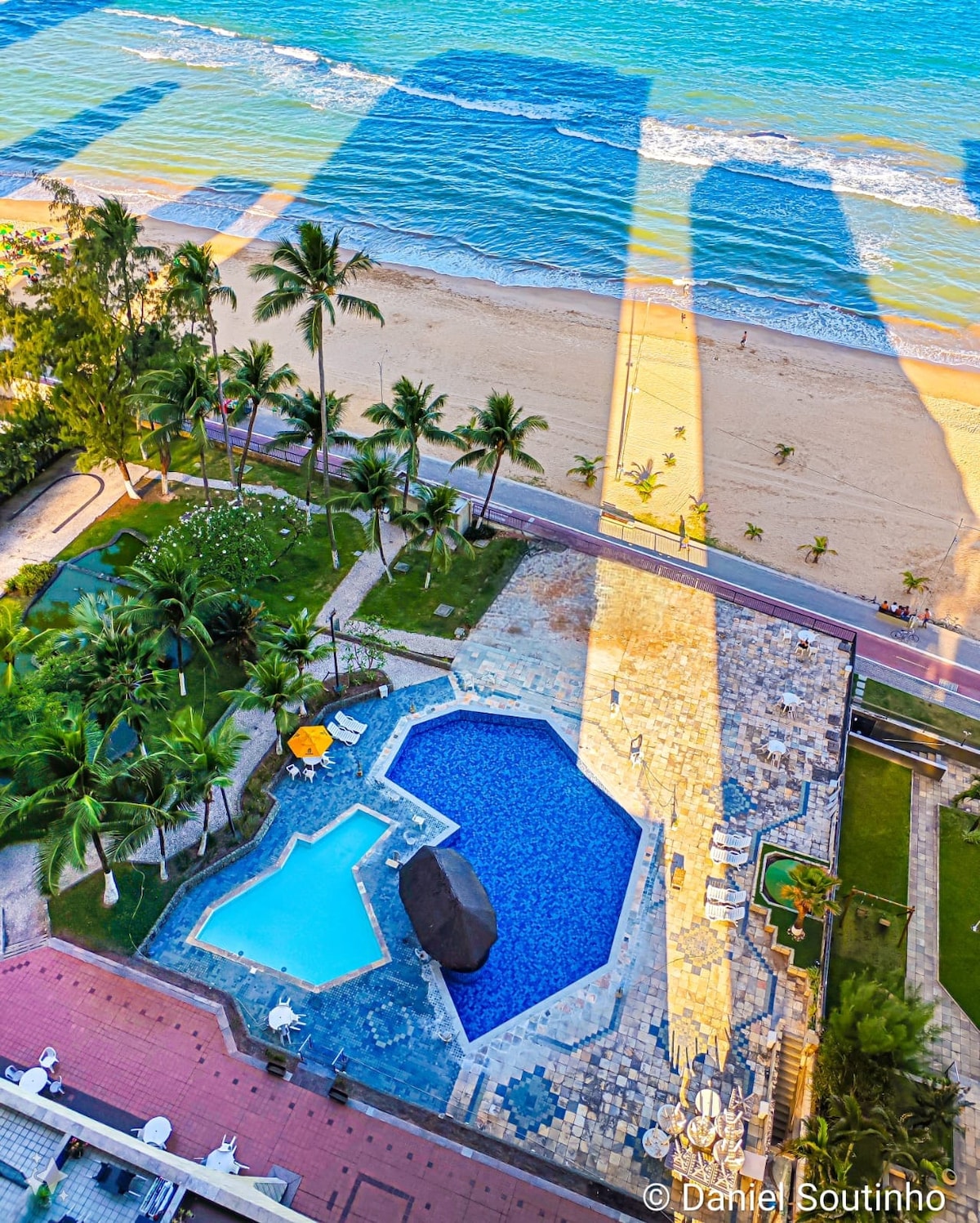 Atenção: Nos meses de maio, junho, julho e agosto o bloco do Flat 2105 estará em obras. O flat é espaçoso com 45m² completamente equipado, condomínio beira-mar, pé na areia com guarda-sóis disponíveis: ✔1 banheiro ✔1 quarto com 1 cama de casal e 1 cama auxiliar ✔1 sala com sofá cama ✔1 colchão sobressalente ✔Varanda com vista para o mar ✔2 piscinas grandes com bar e restaurante ✔Quadras: poliesportiva, Volei de praia/futevôlei, beach soccer ✔Playground e Salão de Jogos ✔Academia e Sauna