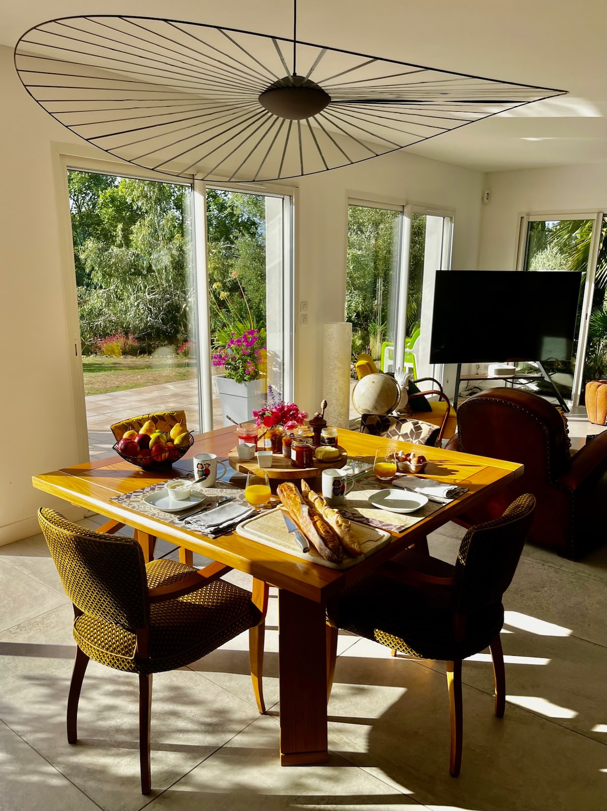 Grange indépendante , rénovée avec soin, à 30 m de notre maison. Suite de plain-pied, fermant à clef avec: - entrée séparée - l'air conditionné - salon avec canapé-lit (140) et TV 140 chaines, Canal+ , Prime vidéo - Nespresso, bouilloire, mini frigo. Snacks - Côté nuit un lit 160 x 200; lit bébé - salle de bain avec douche à l'Italienne, WC séparé - bureau (fibre 1 Gb/s) - borne de recharge VE T2 7.4kw. - parc, barbecue plancha & table pique-nique. - Piscine 7 m x 3,5 m à partir de mai 2026