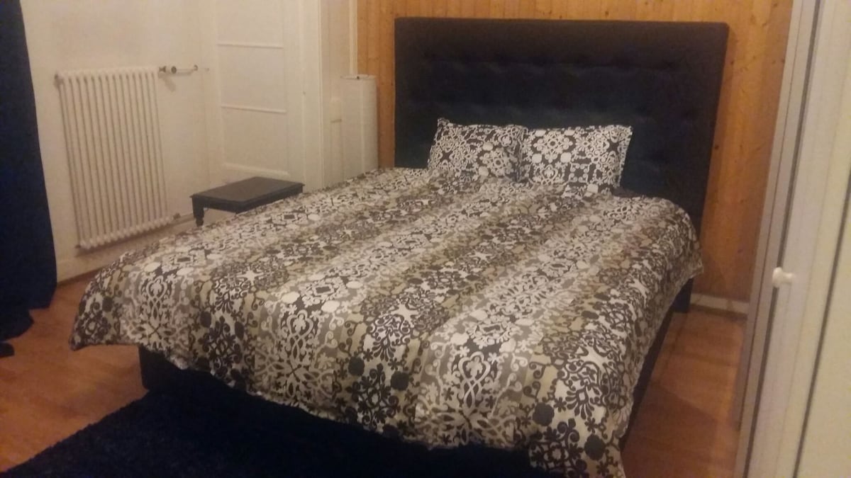 Mon appartement a une surface de plus de 80m2. Situé au 4ème étage d'une maison qui en fait 5 avec ascenseur. Il y a deux balcons. Deux chambres à coucher plus une grande cuisine living room de 40m2. En été vous pourrez bénéficier d'une terrasse avec barbecue. Il est situé à 2 minutes du lac. Les magasins grandes surfaces sont à 5 minutes ainsi que les transports en commun. A 10 minutes à pied de la Gare Cornavin. La proximité du Lac est un atout supplémentaire