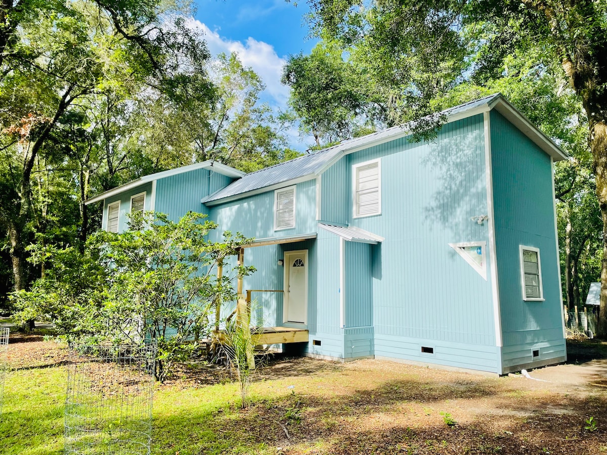This simple green and open property is conveniently located VERY near many beautiful springs and paddling trips on the Sante Fe river. The home includes a full kitchen with stove, cooking essentials, Keurig and a couple complementary coffee pods. There is also a fridge/freezer, and laundry area with washer and dryer. Two TV’s, a 55 inch and 40 inch. The wifi is lightning fast. Outside in the backyard there is a gazebo with a picnic table. There are also two carports to park in.