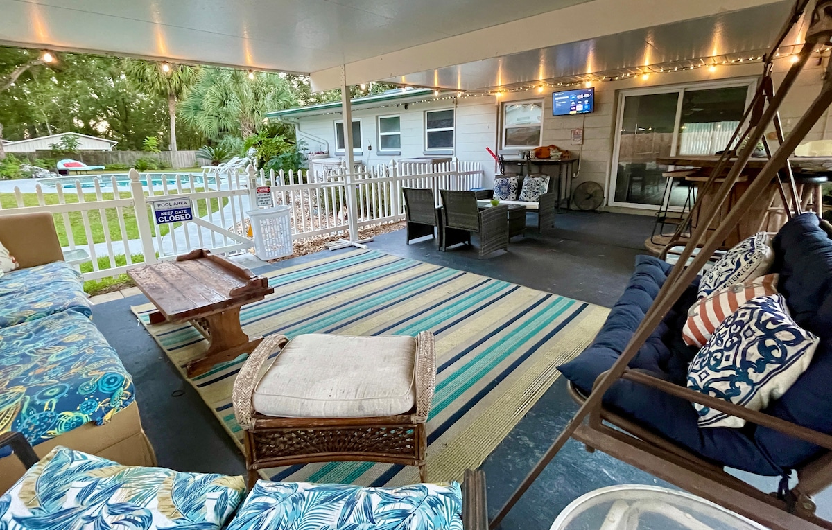 Relax in your private saltwater pool oasis, minutes from UF & downtown Gainesville. 🏊 Saltwater Pool Oasis – Commercial-size pool with shade sail & remodeled deck. 🔥 Built-in Firepit + Pergola – Picnic table & bistro lights for cozy nights. 🎮 Game Room Fun – 500+ arcade games, foosball & board games. 📍 Prime Location – Walk to Publix & restaurants, just 1 mile to UF. 🚗 Free parking & ⚡ fast WiFi for work, study, or streaming. ✨ Perfect for families, groups & game-day stays in Gainesville!