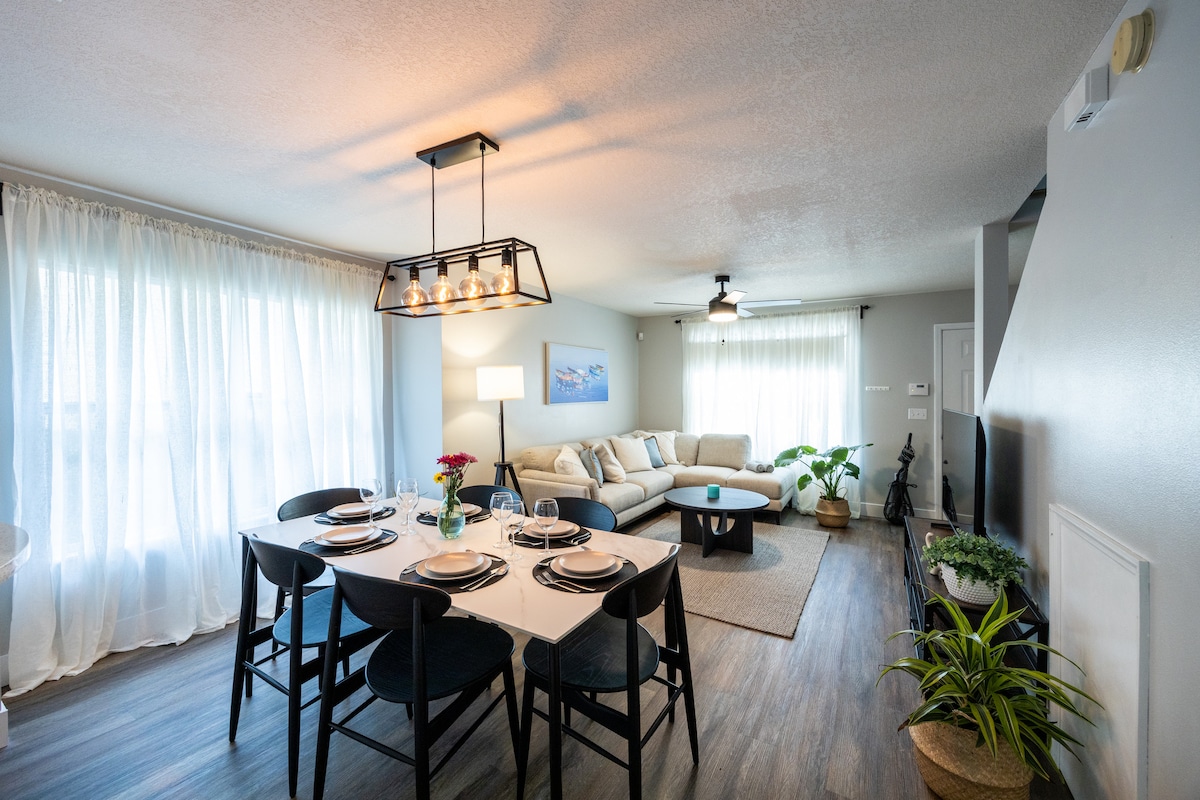 Have fun with the whole family at this stylish place near UF! Plenty of space to spread out and sleep everyone. Plus amazing Florida room that can be enjoyed for outdoor dining and relaxing! The townhome has been completely remodeled with brand new everything. The location is walking distance to the Haile Village Market that includes restaurants, Saturday farmers market, coffee shop, miles of walking paths, and a turtle pond.