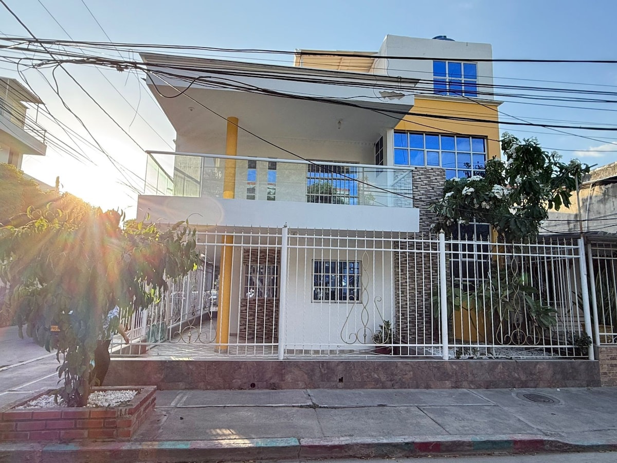 Casa Acogedora en barrio tradicional, ubicado cerca al centro histórico de Santa Marta, posibilidad de cortas y largas estadias. Facil desplazamiento a pie. Es una casa independiente con dos habitaciones principales, zona social con un sofa-cama, baño privado, cocina y zona de descanso con hamaca. Estaré pendiente durante tu estadía de todo lo que necesite, consejos, mejores cosas para ver y hacer, y feliz de poderte mostrar mi ciudad. La bella perla del Caribe Colombiano.