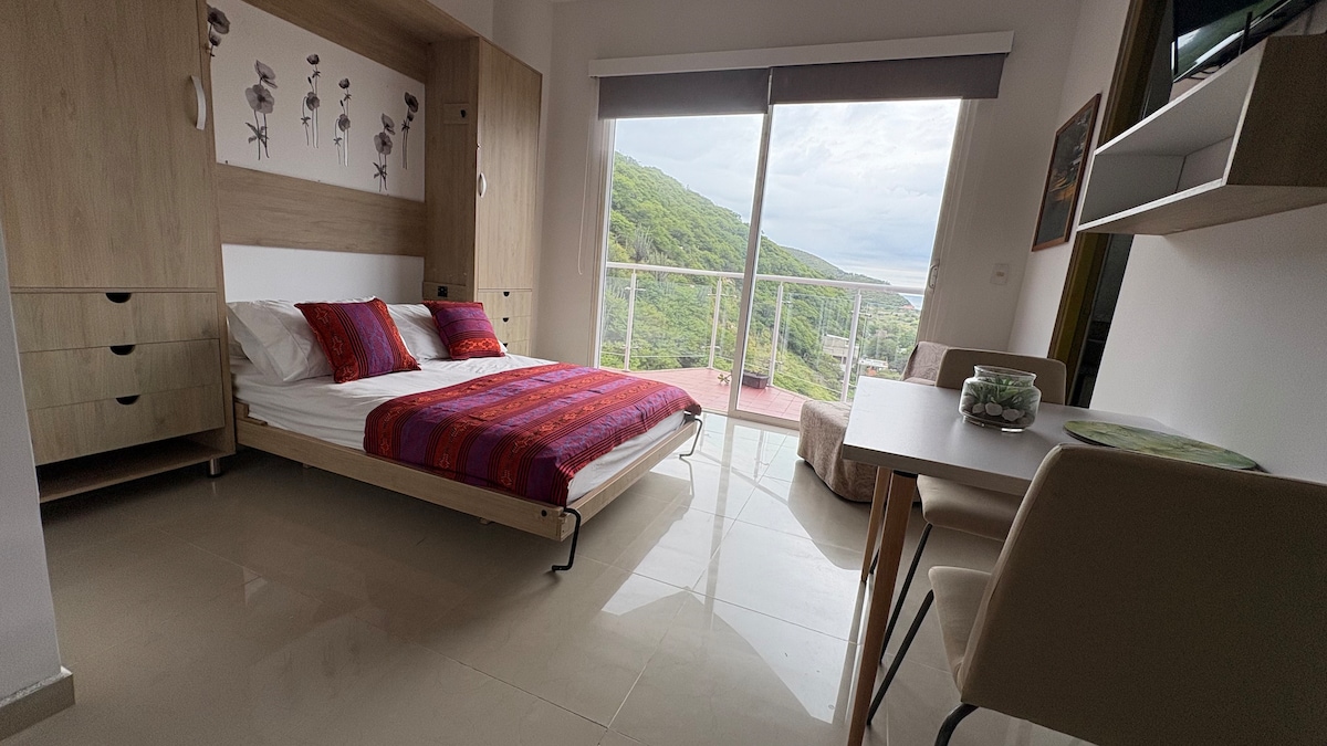 Discover a modern loft in a quiet residential area of El Rodadero! 🌅 🌊 Enjoy breathtaking sea views and unforgettable sunsets from your private balcony. Perfect for relaxing, home-office, or exploring the region. Located near the beaches of El Rodadero and Playa Gaira, restaurants, and supermarkets, and just 20 minutes from the airport. With swimming pools, coworking spaces, a gym, and more, this loft offers the perfect balance of comfort and accessibility for an unforgettable stay.
